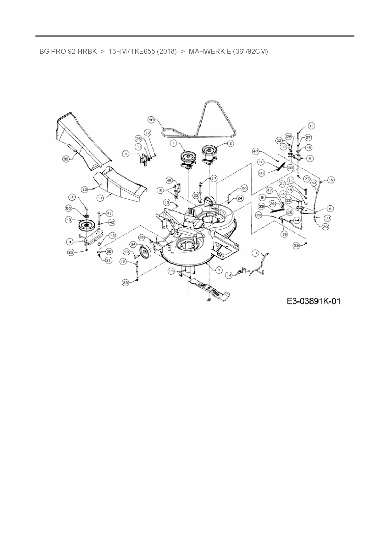 Ersatzteile für Rasentraktor Bestgreen BG Pro 92 HRBK aus der Zeichnung Mähwerk E (36"/92cm):