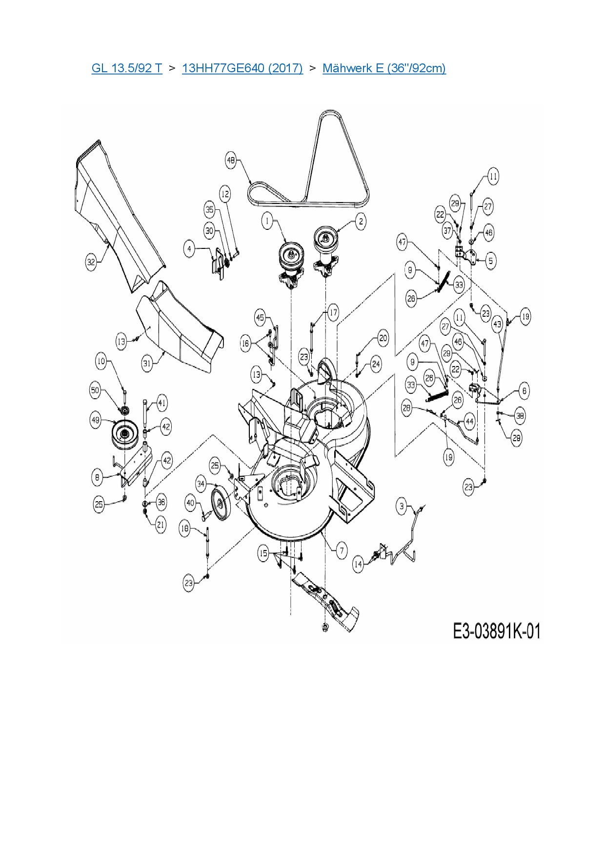 Ersatzteile für Rasentraktor Gartenland GL 13.5/92 T aus der Zeichnung Mähwerk E (36"/92cm):