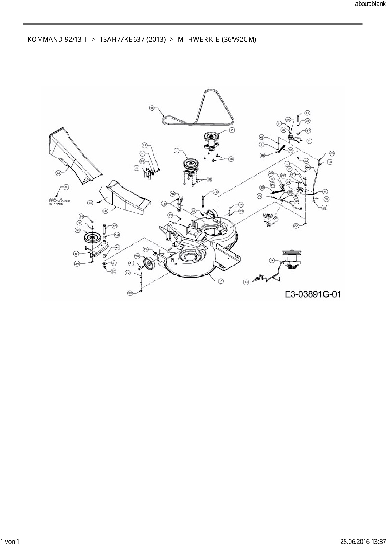 Ersatzteile für Rasentraktor EFCO Kommand 92/13 T aus der Zeichnung Mähwerk E (36"/92cm):