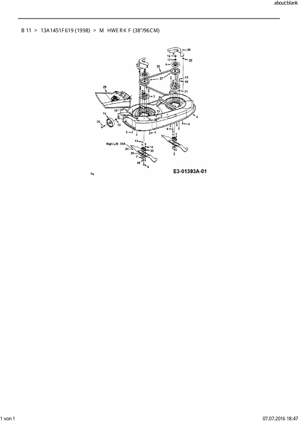 Ersatzteile für Rasentraktor FLEURELLE B 11 aus der Zeichnung Mähwerk F (38"/96cm) 2: