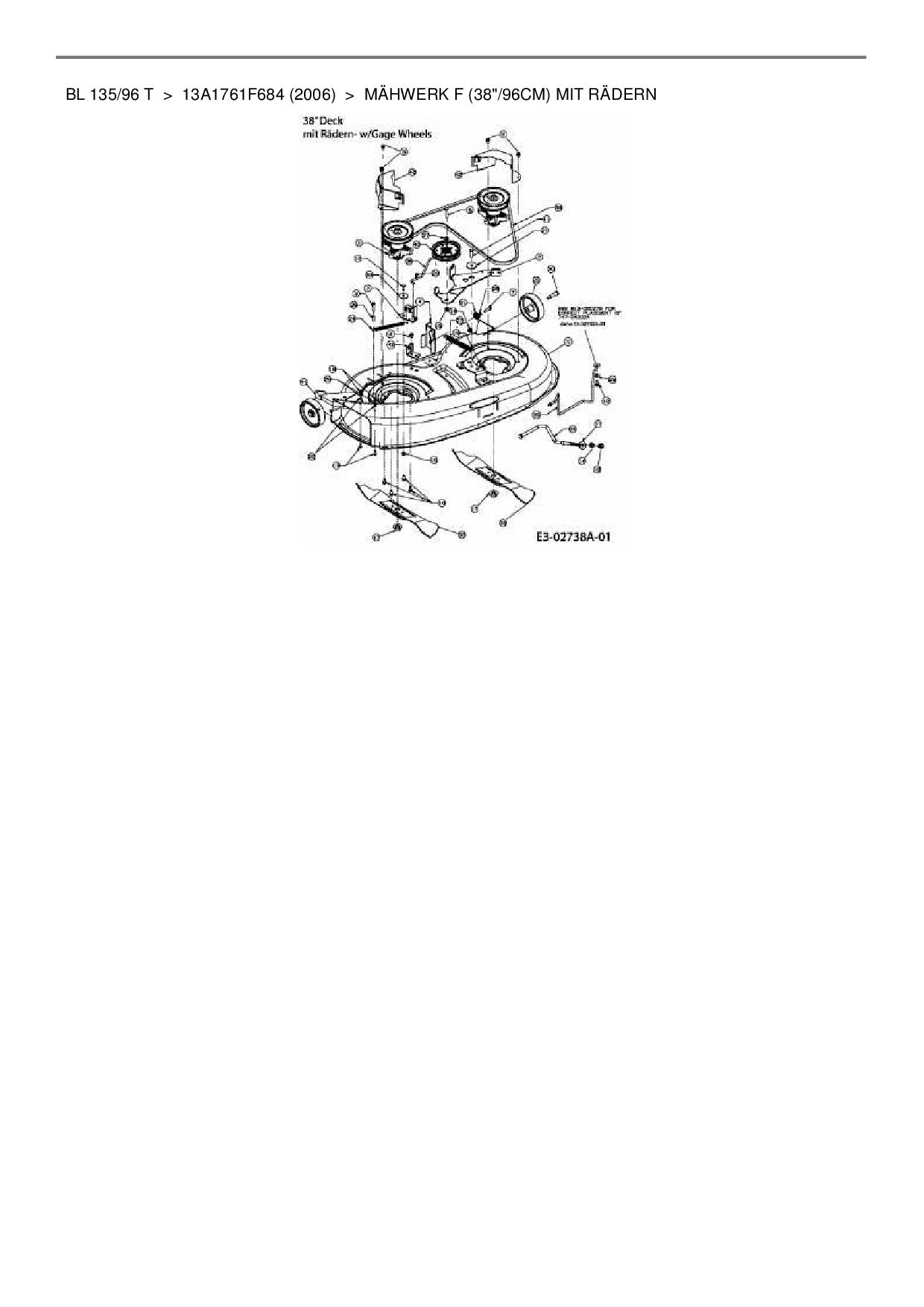 Download Ersatzteil-Zeichnung Bolens BL 135/96 T Zeichnung Mähwerk F (38"/96cm) mit Rädern (PDF-Format)
