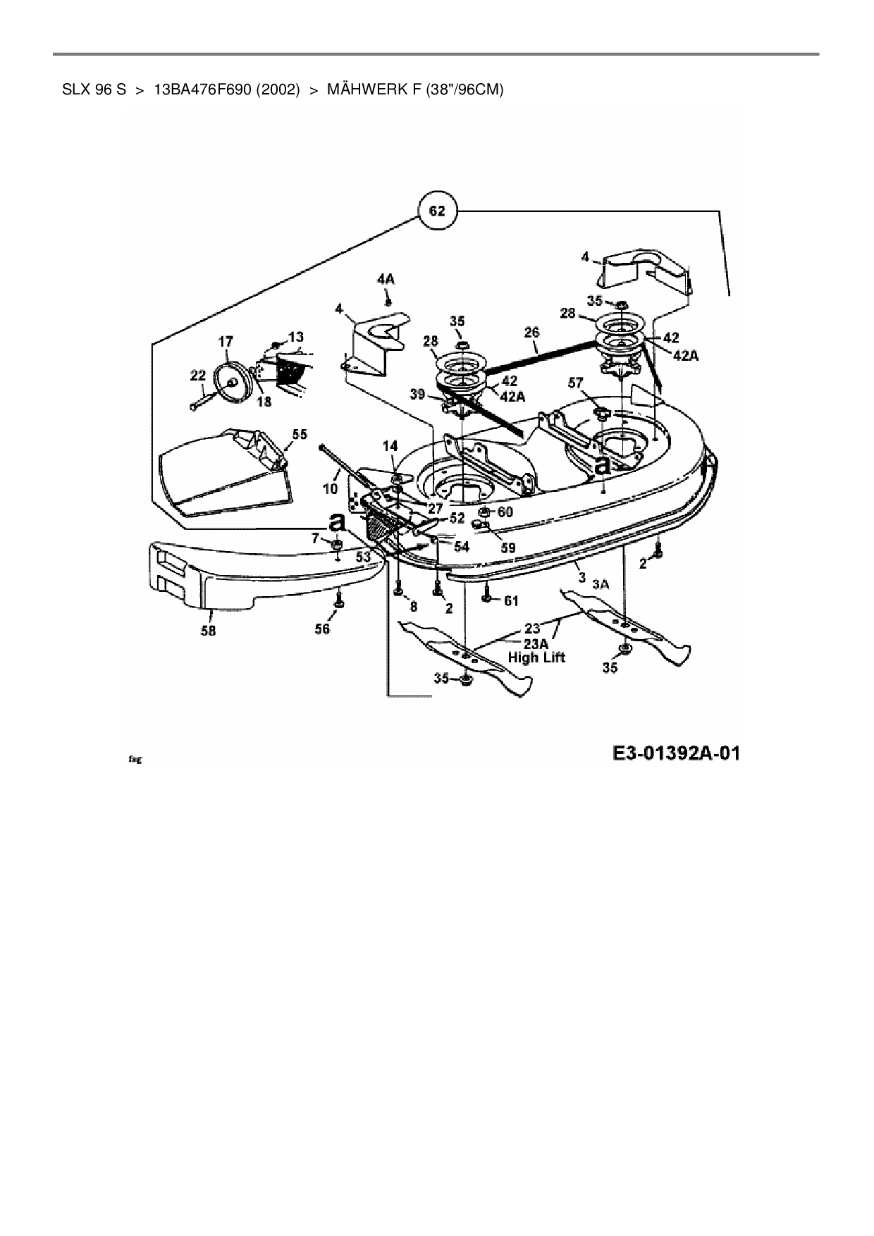 Ersatzteile für Rasentraktor Gutbrod SLX 96 S aus der Zeichnung Mähwerk F (38"/96cm):
