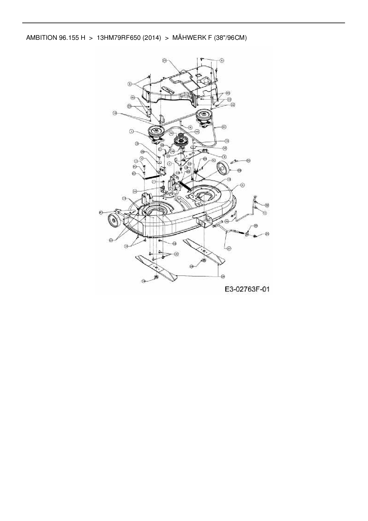 Ersatzteile für Rasentraktor Wolf-Garten Ambition 96.155 H aus der Zeichnung Mähwerk F (38"/96cm):