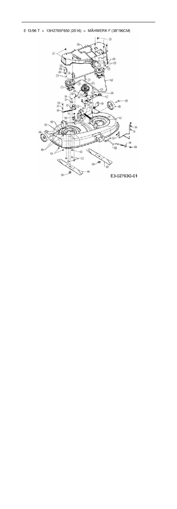 Ersatzteile für Rasentraktor Wolf-Garten E 13/96 T aus der Zeichnung Mähwerk F (38"/96cm):