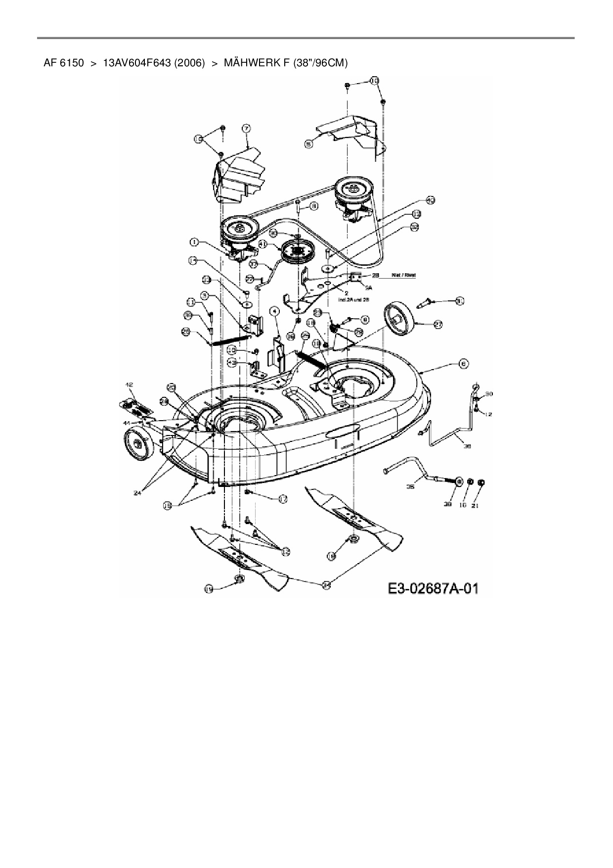 Ersatzteile für Rasentraktor Yard-Man AF 6150 aus der Zeichnung Mähwerk F (38"/96cm):