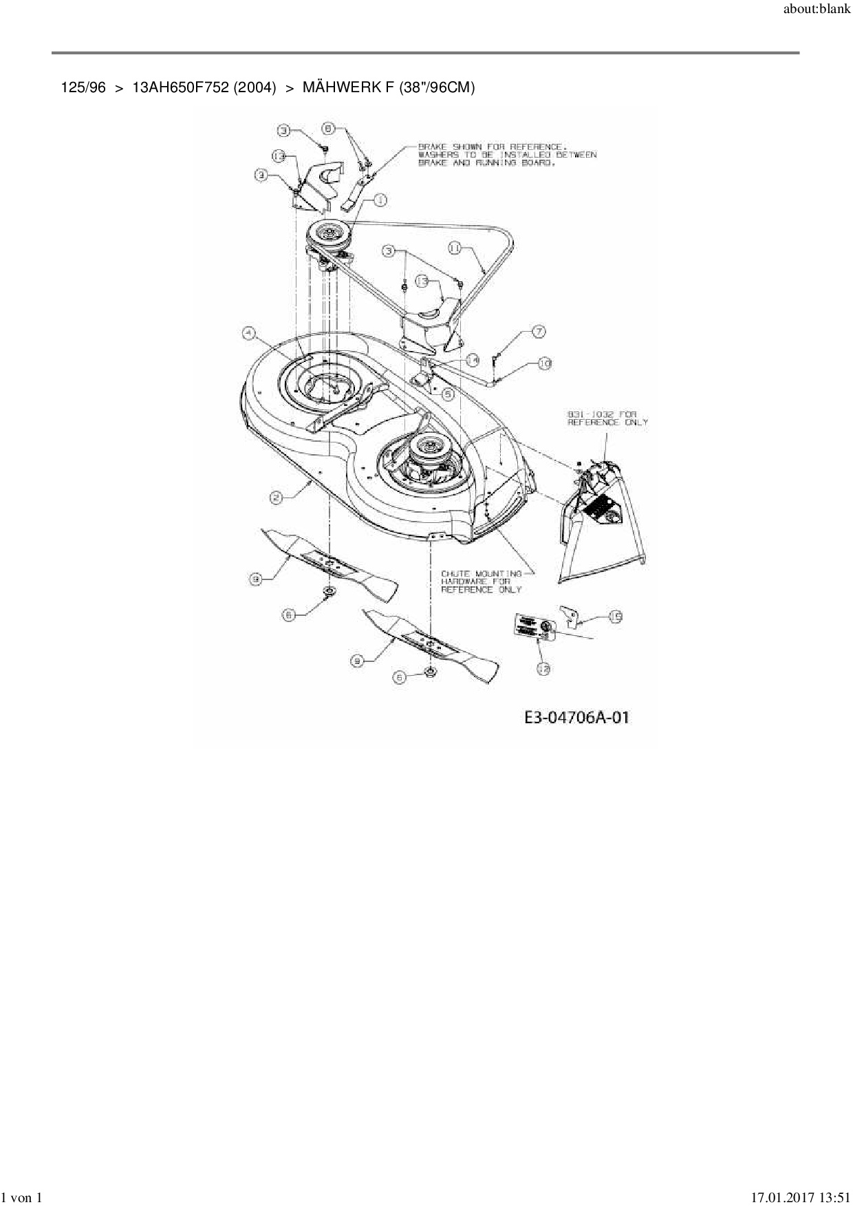 Ersatzteile für Rasentraktor MTD 125/96 aus der Zeichnung Mähwerk F (38"/96cm):