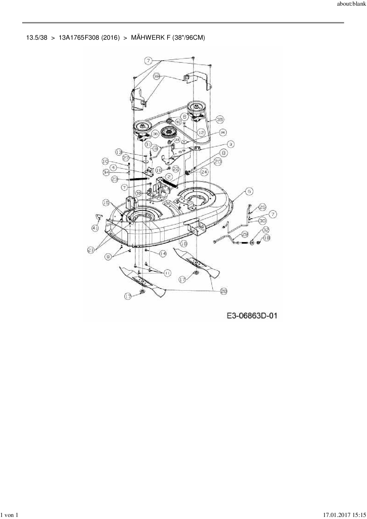 Ersatzteile für Rasentraktor MTD 13.5/38 aus der Zeichnung Mähwerk F (38"/96cm):