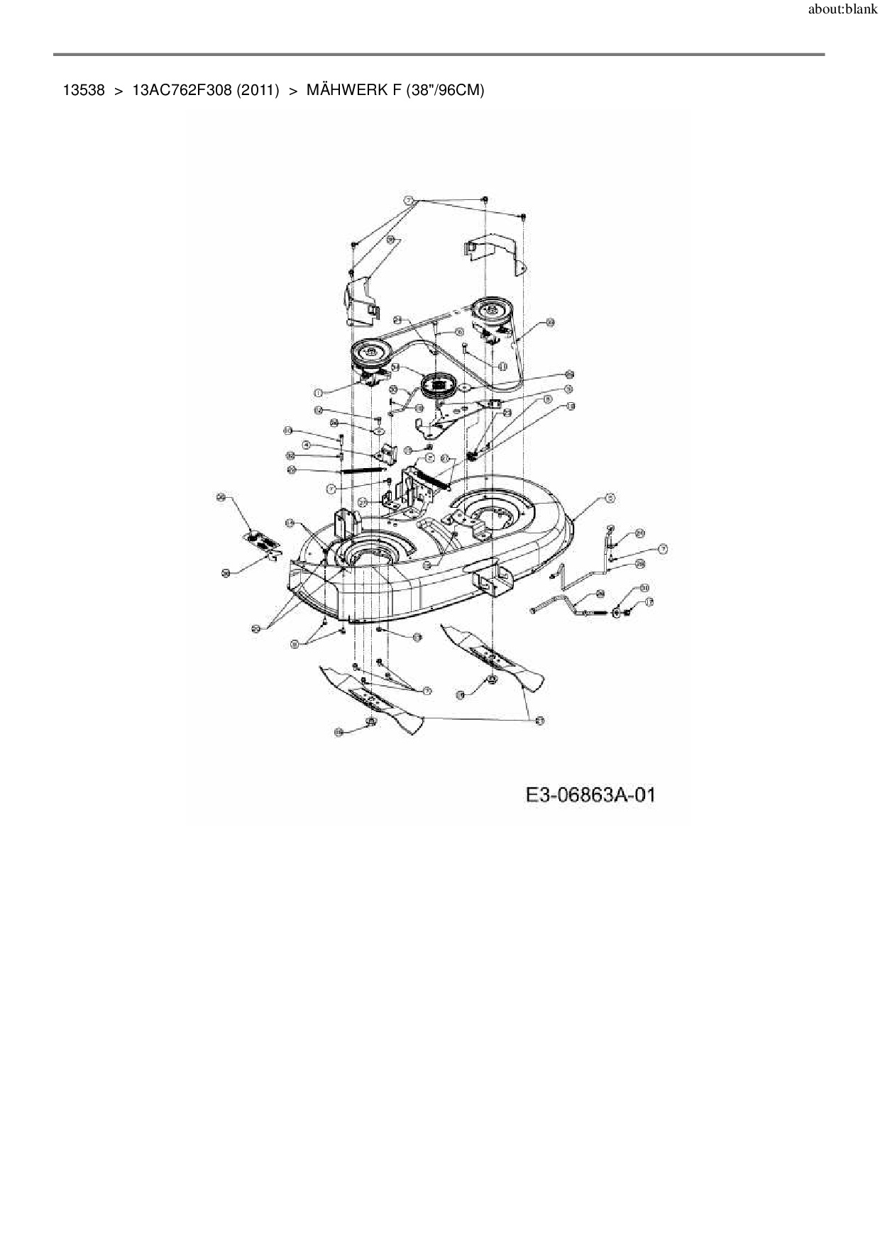 Ersatzteile für Rasentraktor MTD 13538 aus der Zeichnung Mähwerk F (38"/96cm):