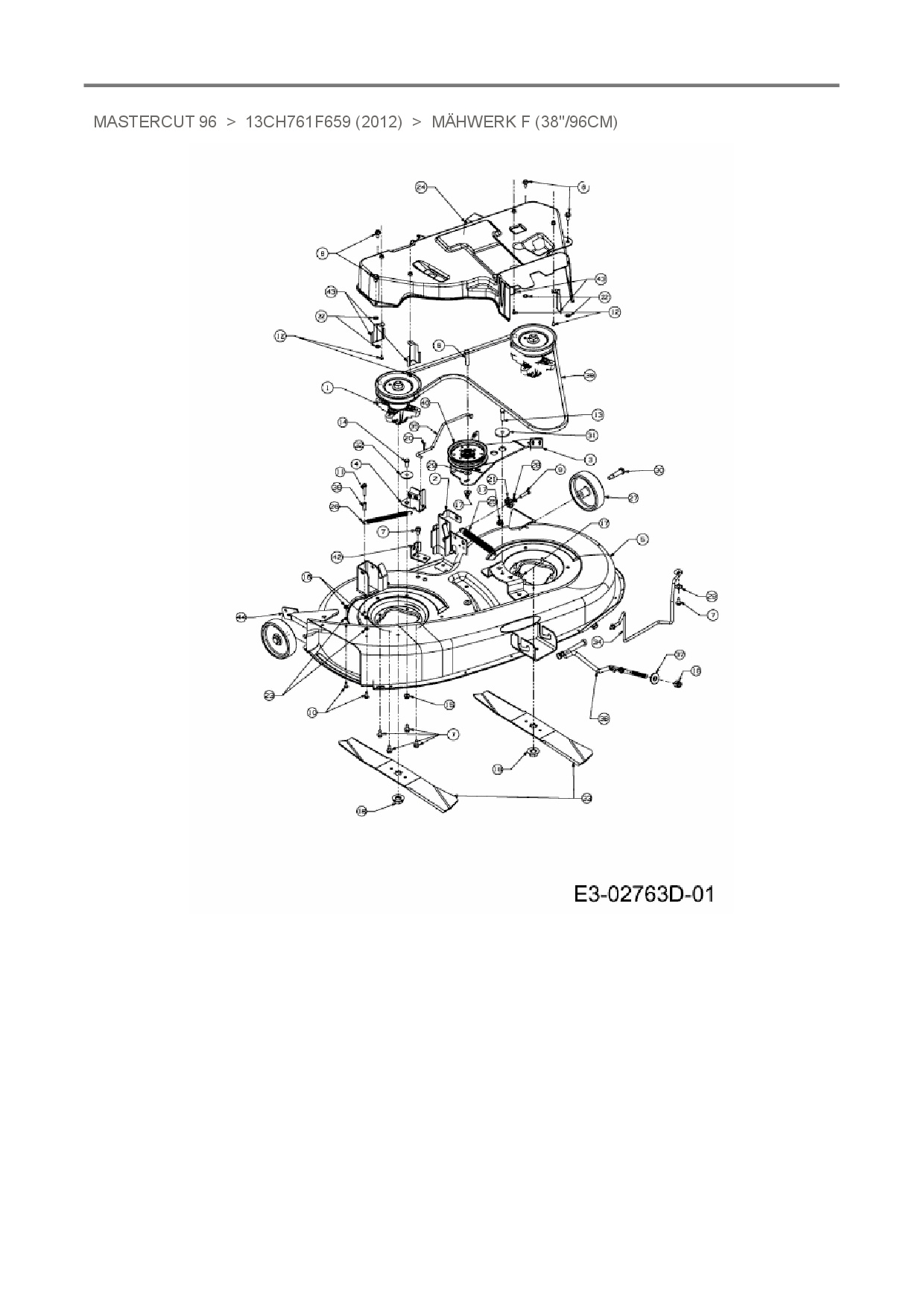 Ersatzteile für Rasentraktor Mastercut Mastercut 96 aus der Zeichnung Mähwerk F (38"/96cm):