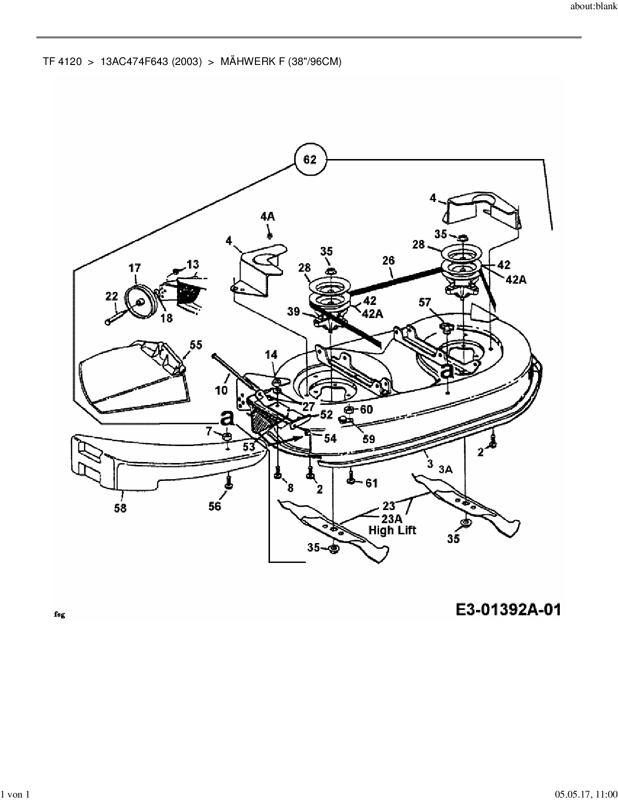 Ersatzteile für Rasentraktor Yard-Man TF 4120 aus der Zeichnung Mähwerk F (38"/96cm):