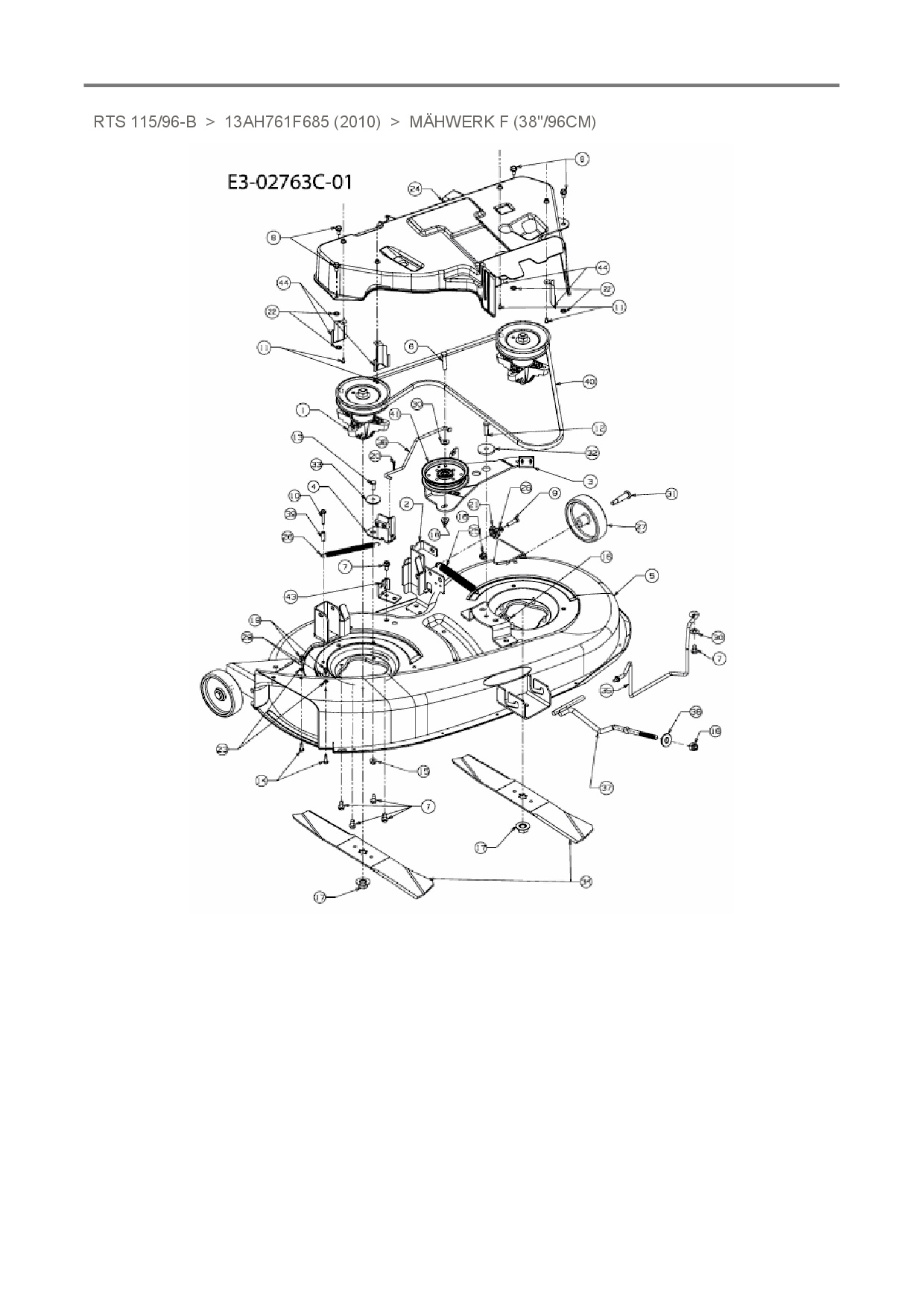 Ersatzteile für Rasentraktor Sunline RTS 115/96-B aus der Zeichnung Mähwerk F (38"/96cm):