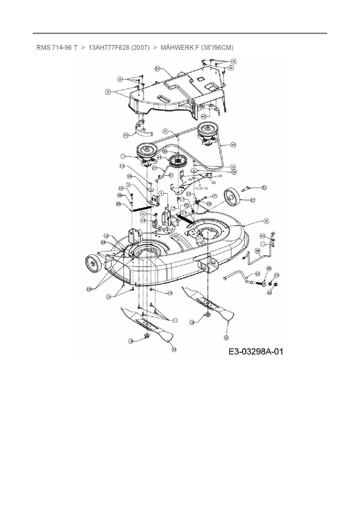 Ersatzteile für Rasentraktor Raiffeisen RMS 714-96 T aus der Zeichnung Mähwerk F (38"/96cm):