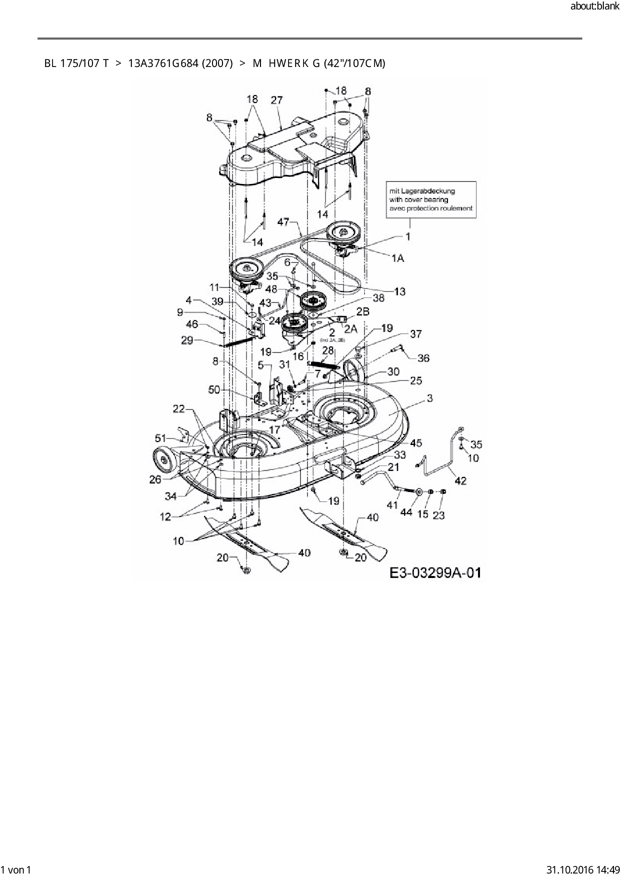 Ersatzteile für Rasentraktor Bolens BL 175/107 T aus der Zeichnung Mähwerk G (42"/107cm):