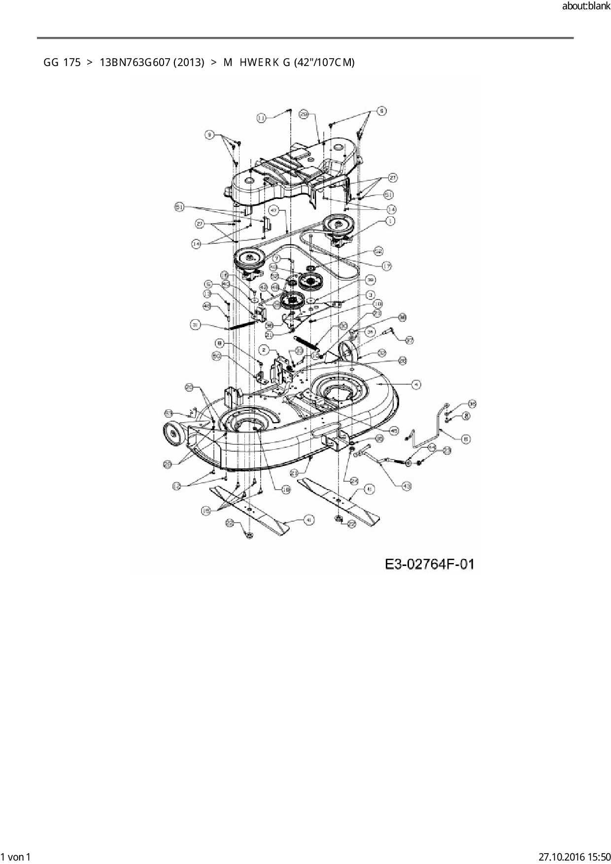 Ersatzteile für Rasentraktor Blisar GG 175 aus der Zeichnung Mähwerk G (42"/107cm):