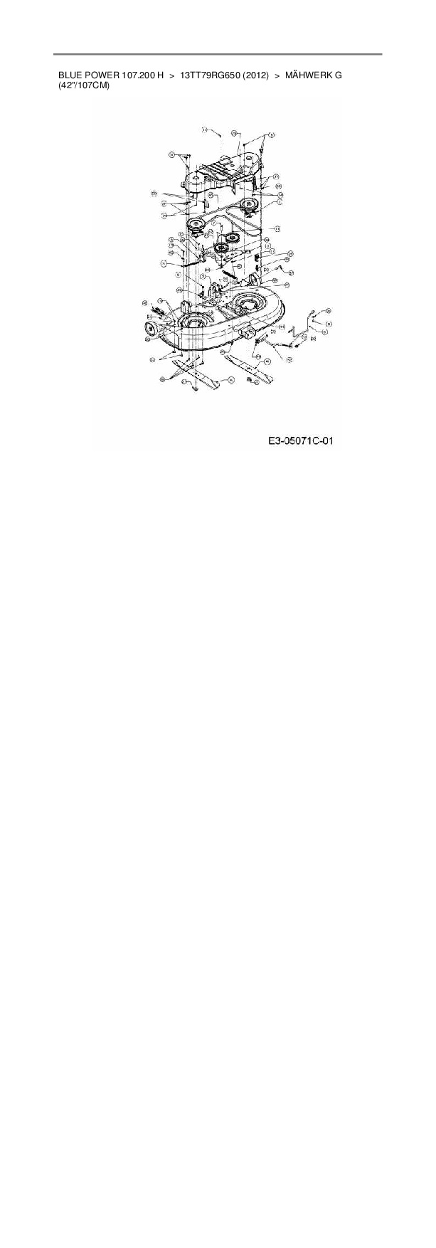 Ersatzteile für Rasentraktor Wolf-Garten Blue Power 107.200 H aus der Zeichnung Mähwerk G (42"/107cm):