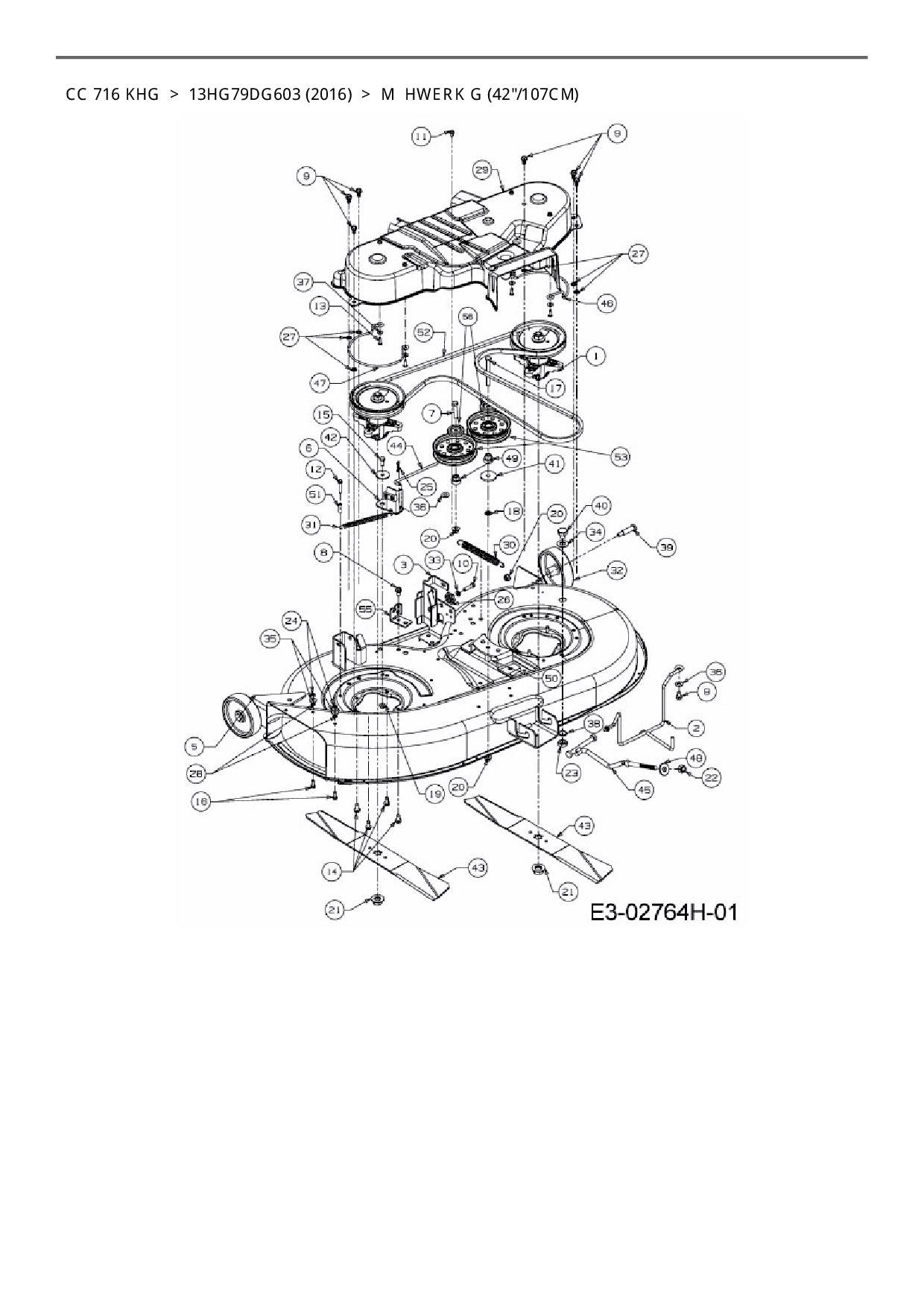 Ersatzteile für Rasentraktor Cub Cadet CC 716 KHG aus der Zeichnung Mähwerk G (42"/107cm):