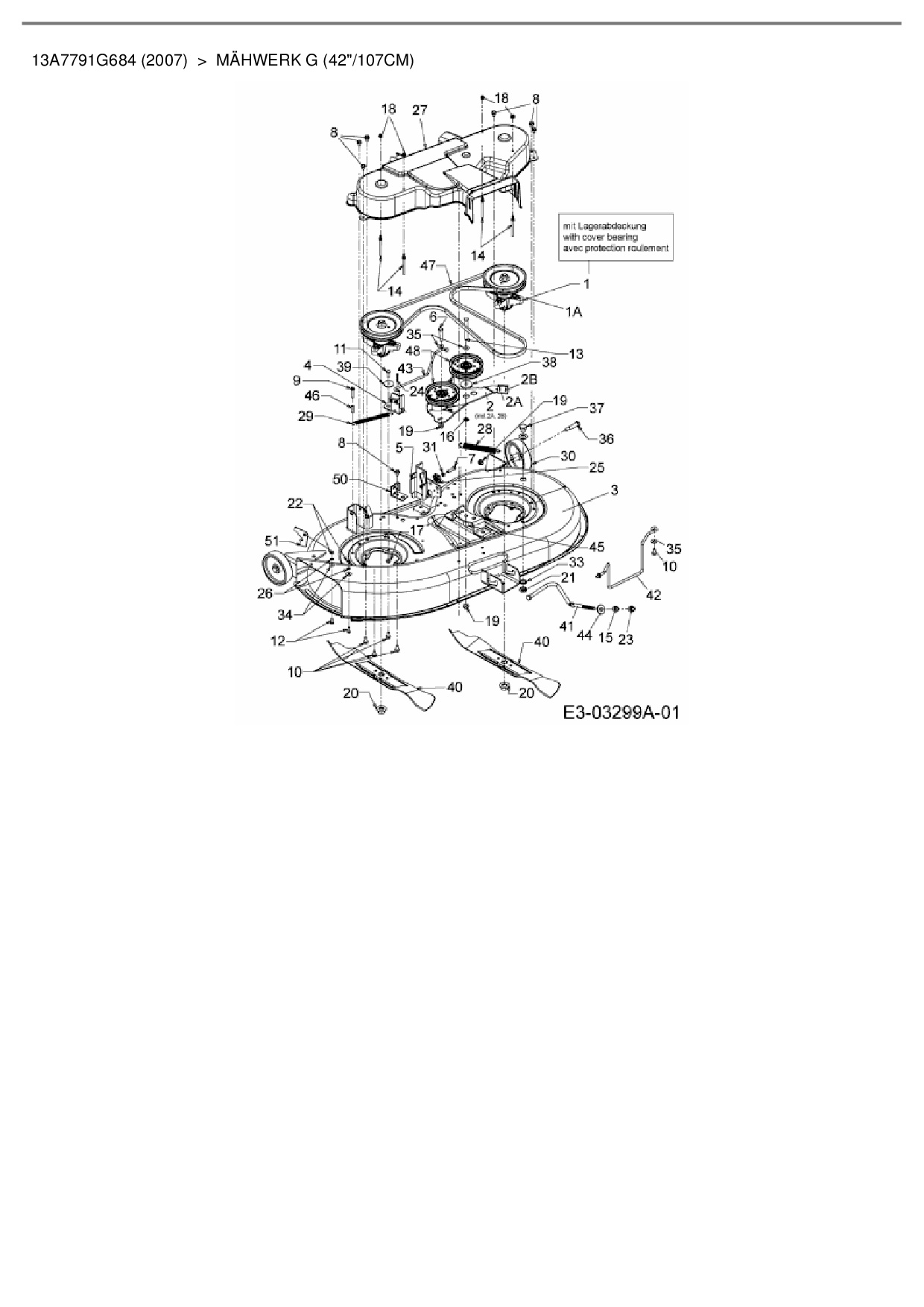 Ersatzteile für Rasentraktor Bolens BL 200/107 H aus der Zeichnung Mähwerk G (42"/107cm):