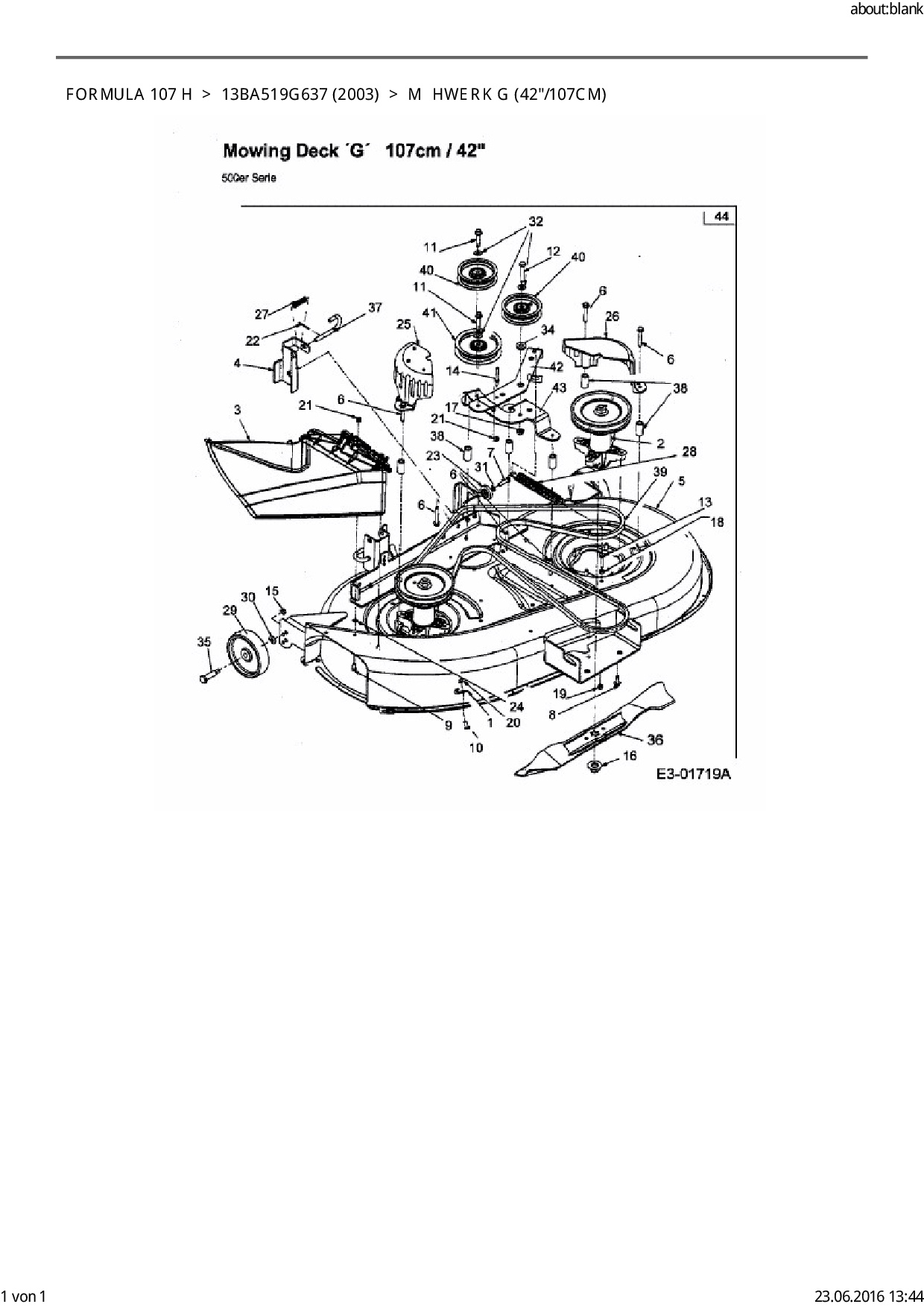 Ersatzteile für Rasentraktor EFCO Formula 107 H aus der Zeichnung Mähwerk G (42"/107cm):