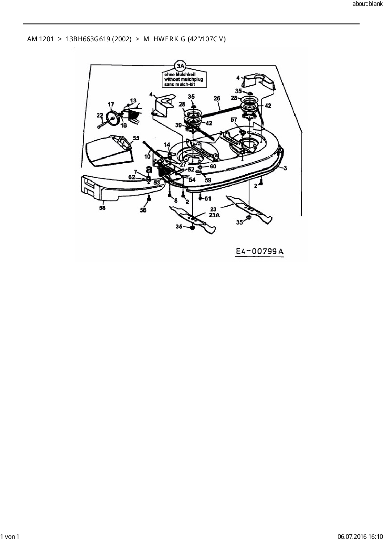 Ersatzteile für Rasentraktor FLEURELLE AM 1201 aus der Zeichnung Mähwerk G (42"/107cm):