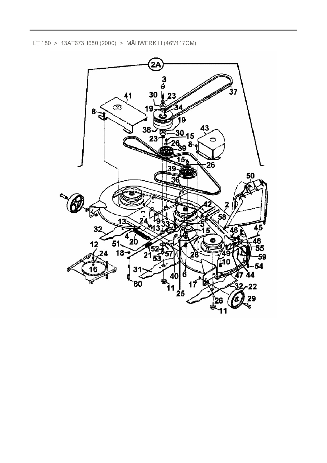 Ersatzteile für Rasentraktor White LT 180 aus der Zeichnung Mähwerk H (46"/117cm):