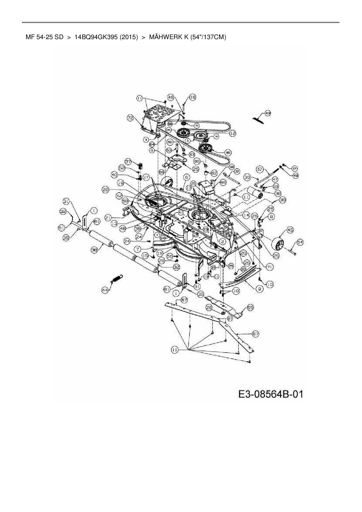 Ersatzteile für Gartentraktor Massey Ferguson MF 54-25 SD aus der Zeichnung Mähwerk K (54"/137cm):