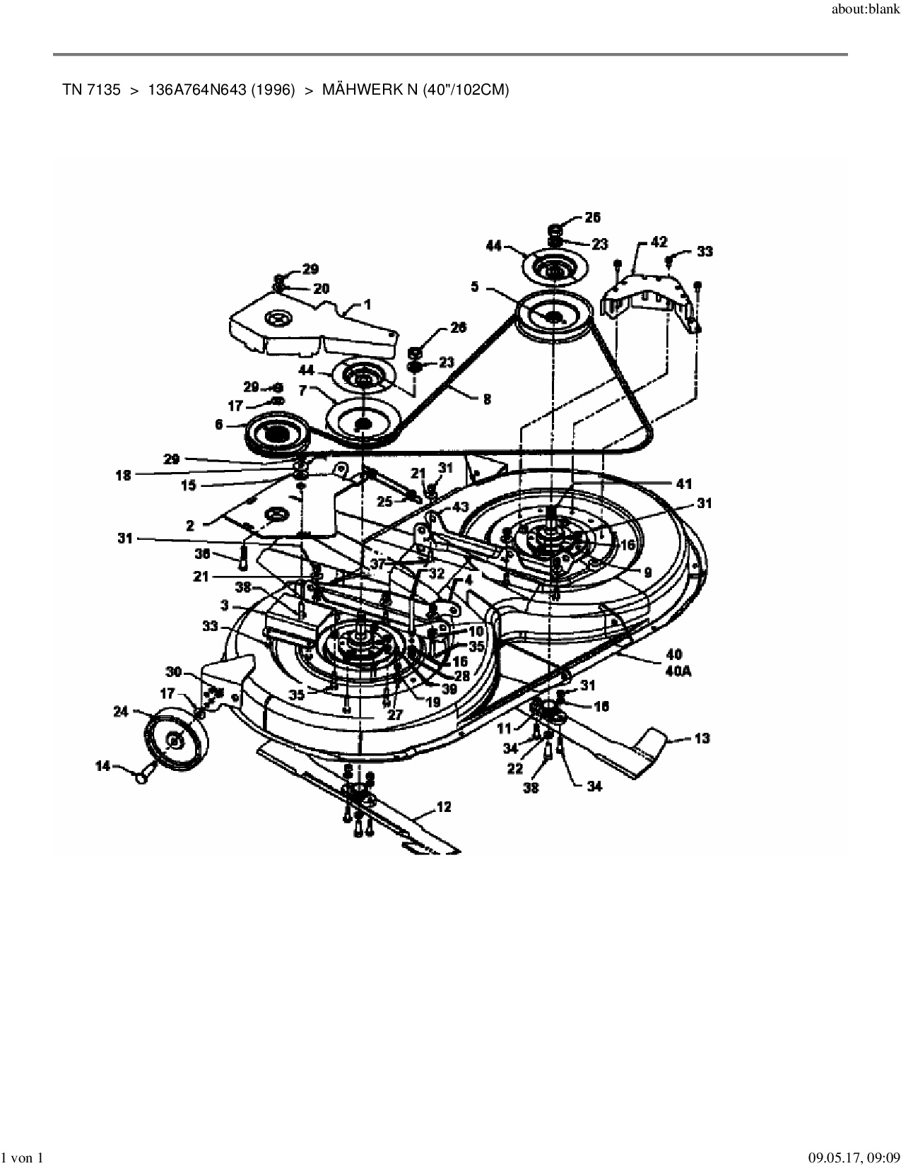 Ersatzteile für Rasentraktor Yard-Man TN 7135 aus der Zeichnung Mähwerk N (40"/102cm):