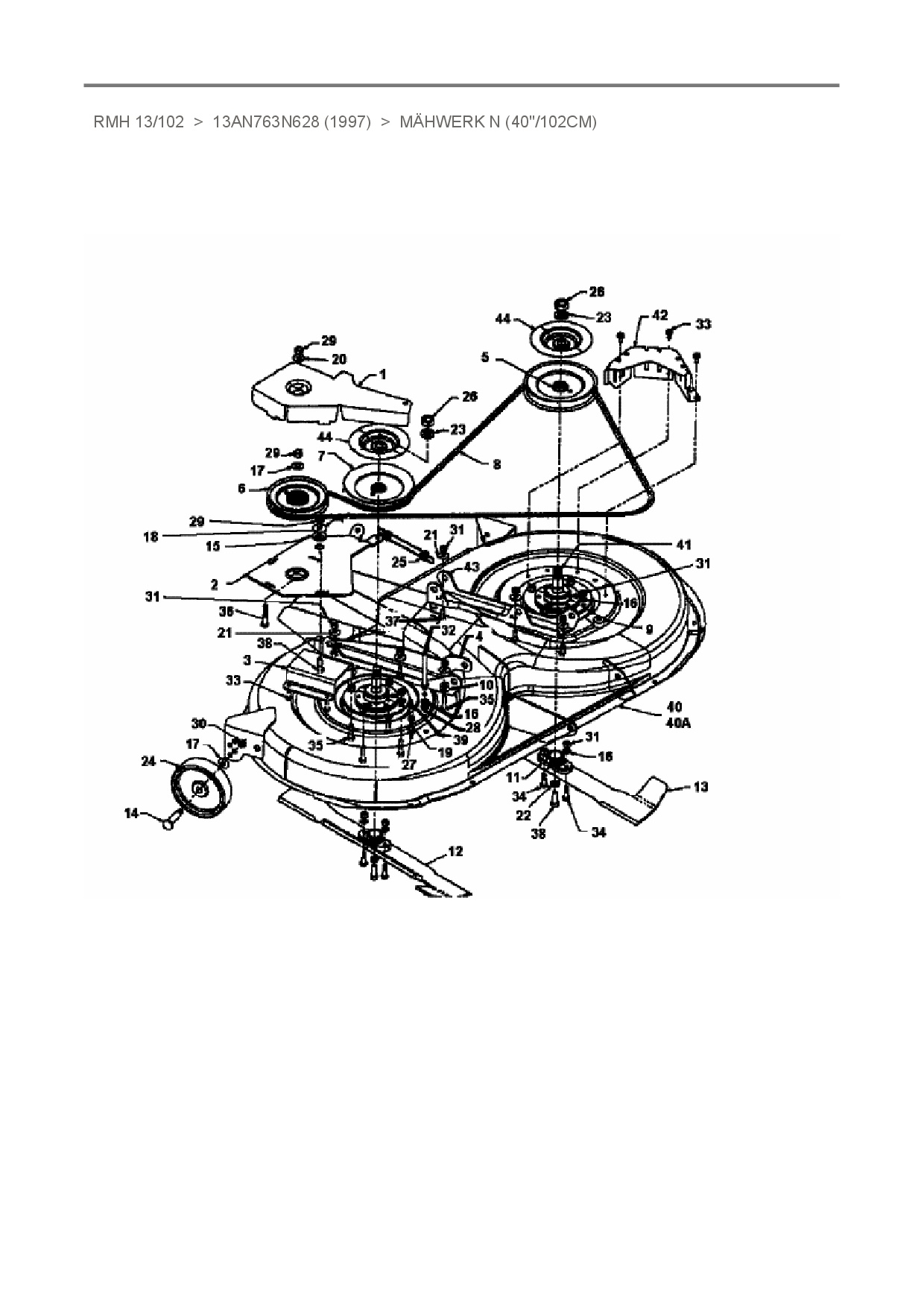 Ersatzteile für Rasentraktor Raiffeisen RMH 13/102 aus der Zeichnung Mähwerk N (40"/102cm):