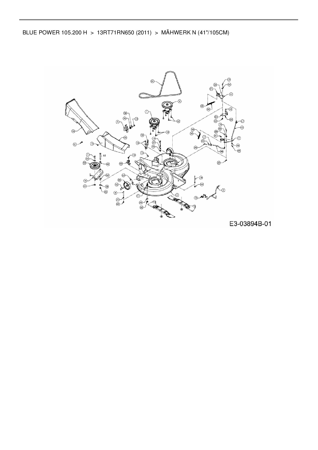 Ersatzteile für Rasentraktor Wolf-Garten Blue Power 105.200 H aus der Zeichnung Mähwerk N (41"/105cm):