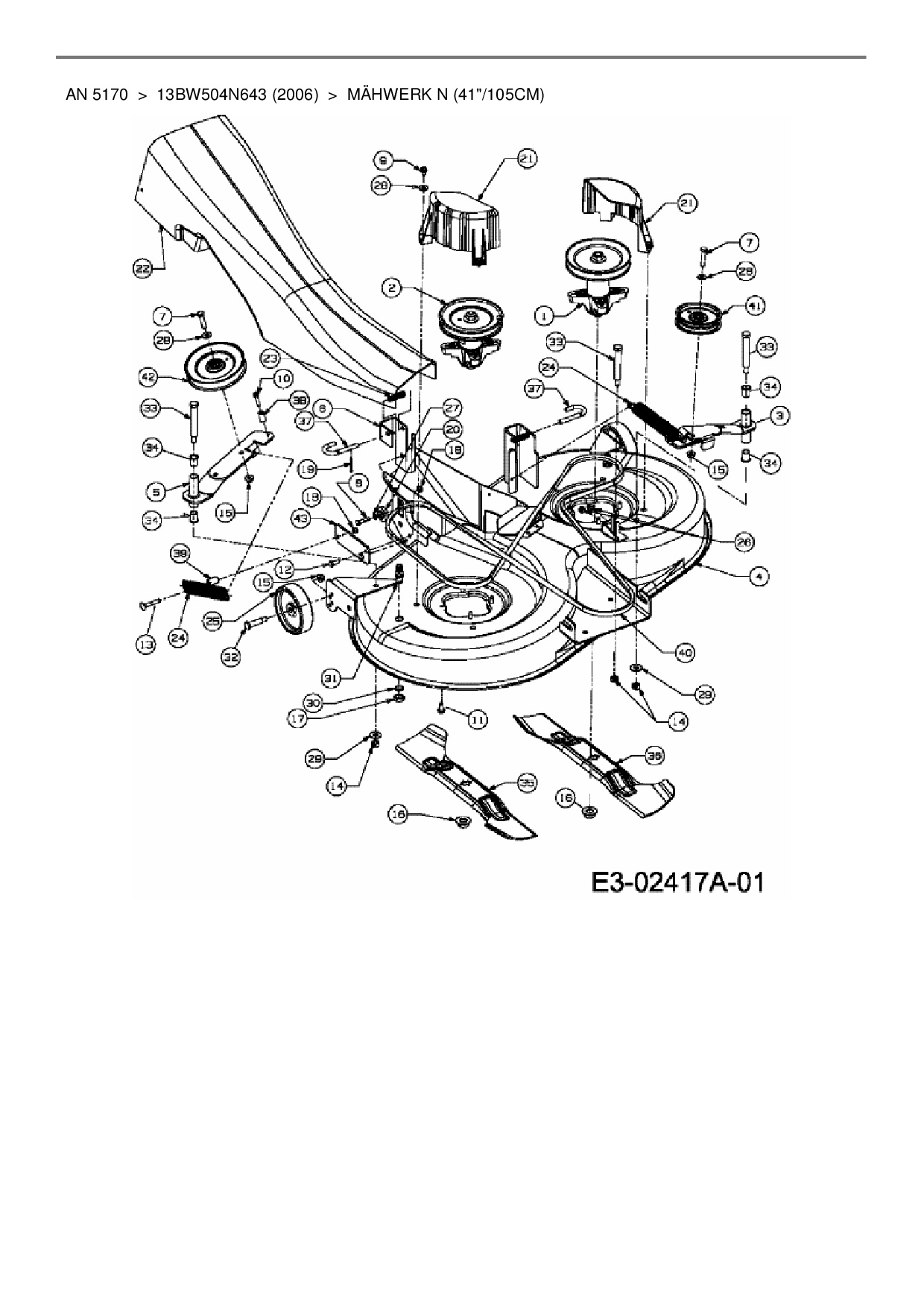 Ersatzteile für Rasentraktor Yard-Man AN 5170 aus der Zeichnung Mähwerk N (41"/105cm):