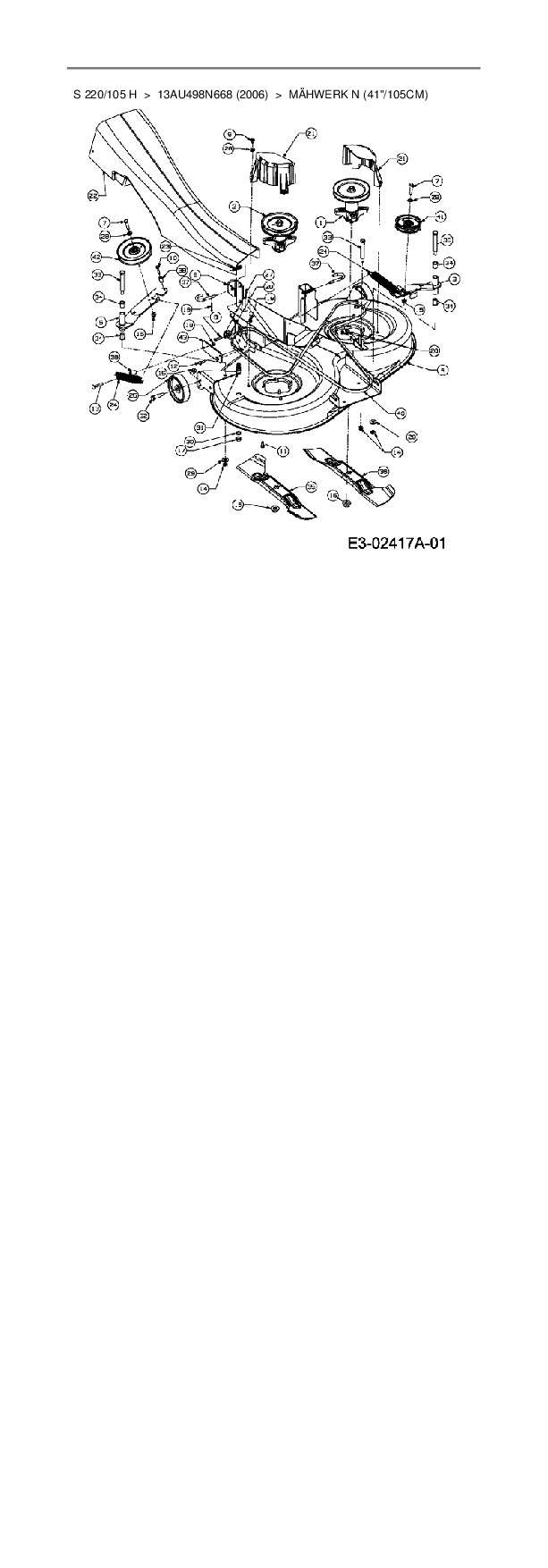 Ersatzteile für Rasentraktor Mac Allister S 220/105 H aus der Zeichnung Mähwerk N (41"/105cm):