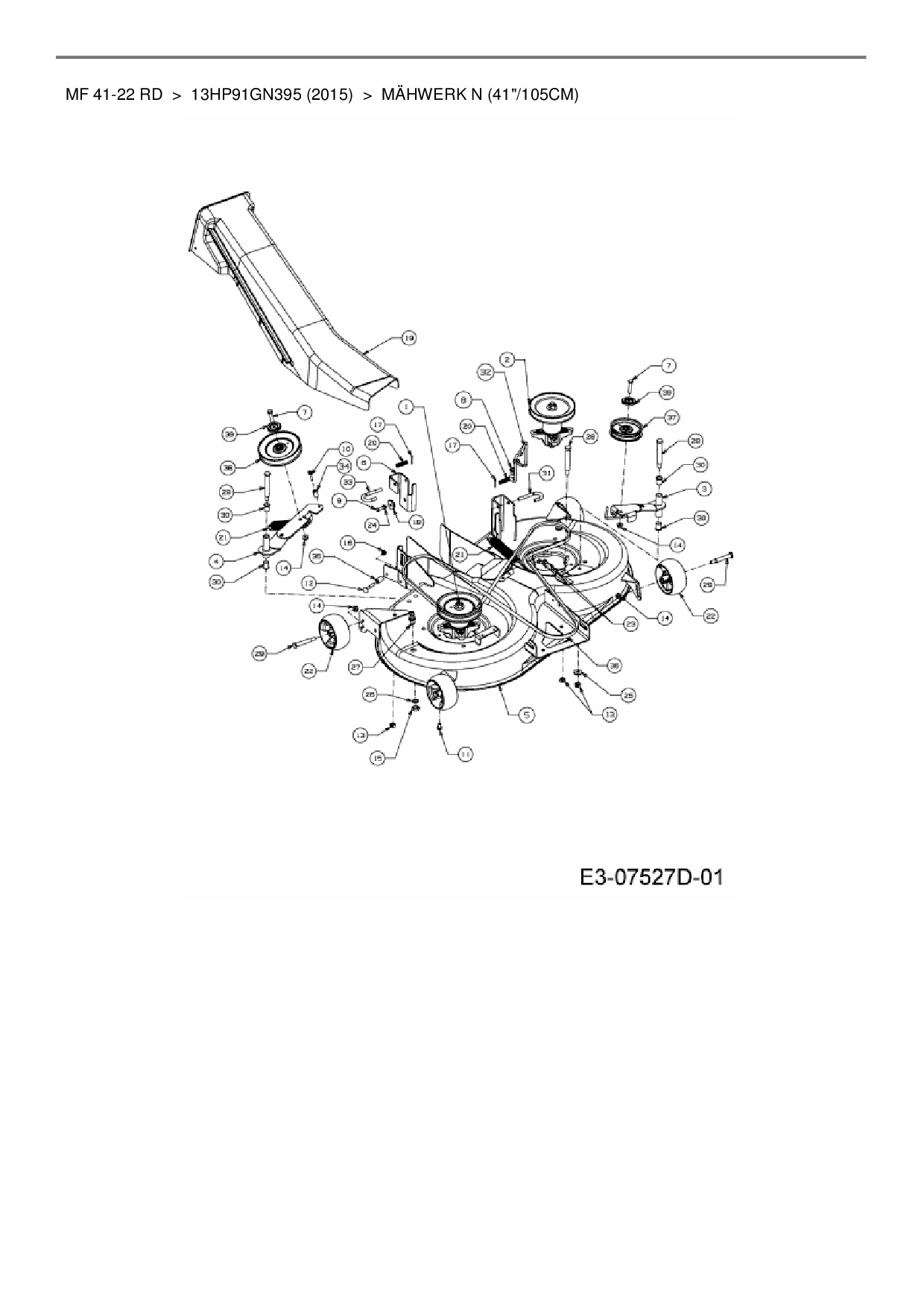 Zeichnung für Massey Ferguson Rasentraktor MF 41-22 RD mit der Geräte-Artikelnr. 13HP91GN395 ab Baujahr 2015: