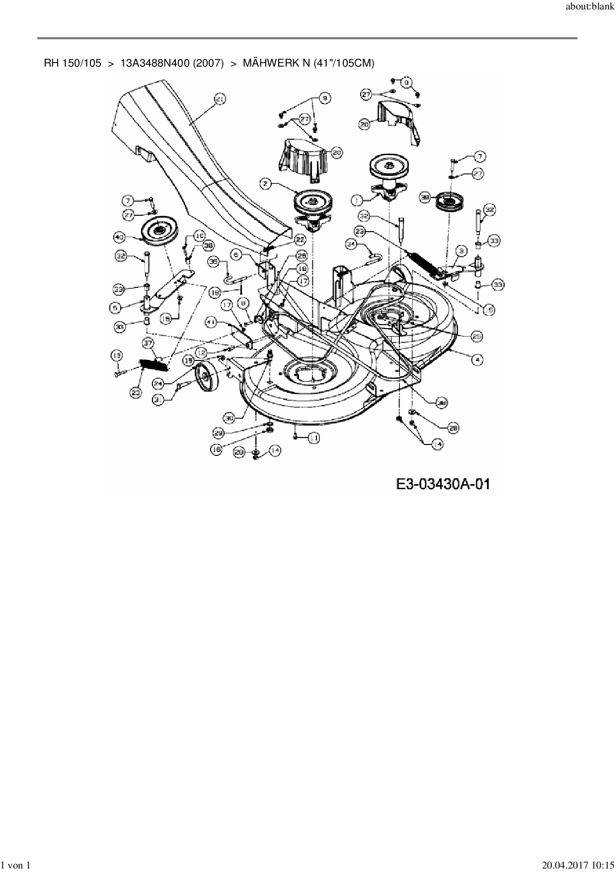 Ersatzteile für Rasentraktor MTD RH 150/105 aus der Zeichnung Mähwerk N (41"/105cm):