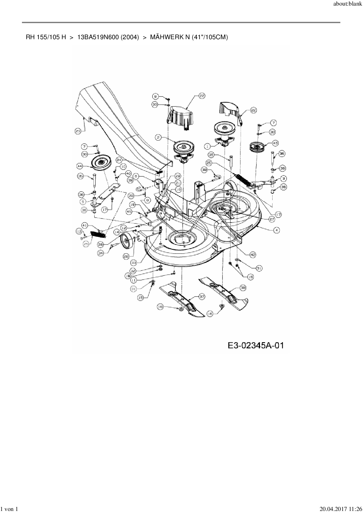Ersatzteile für Rasentraktor MTD RH 155/105 H aus der Zeichnung Mähwerk N (41"/105cm):