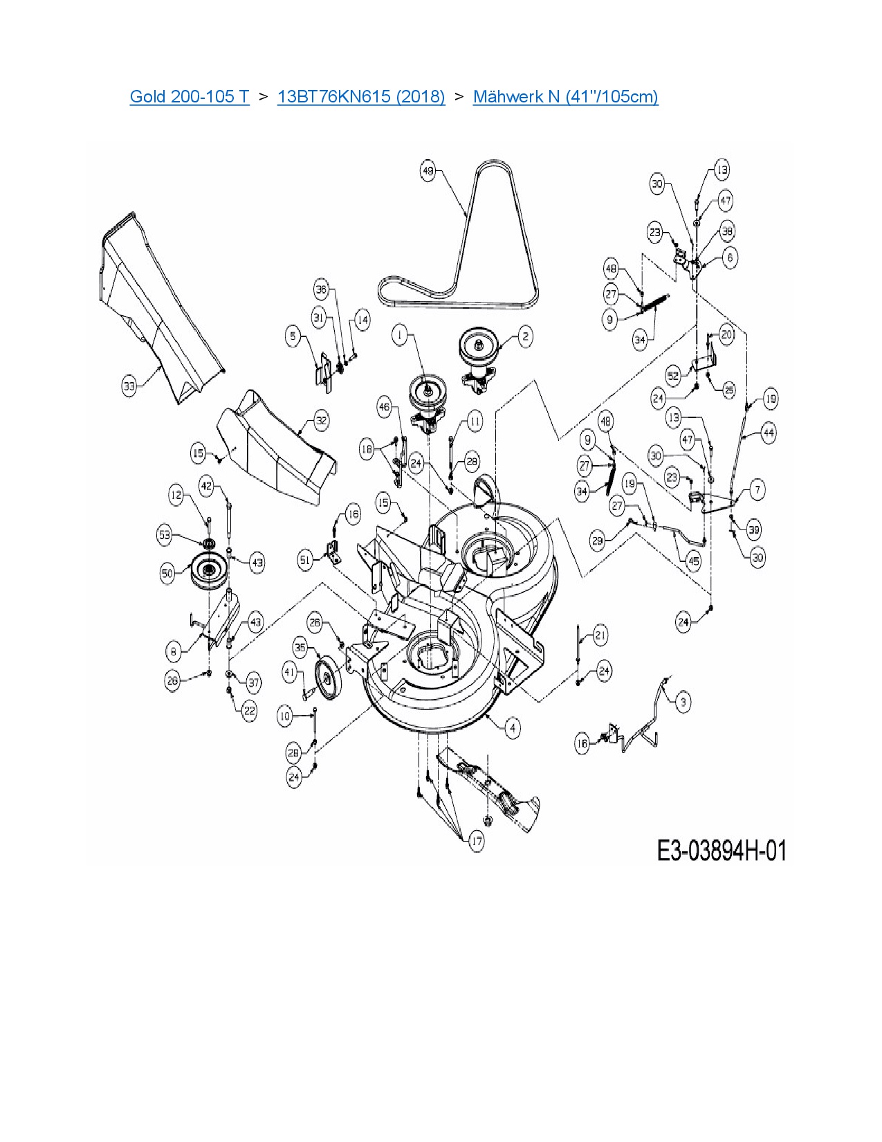Ersatzteile für Rasentraktor MTD Gold 200-105 T aus der Zeichnung Mähwerk N (41"/105cm):