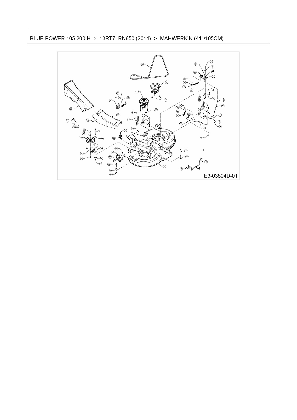 Ersatzteile für Rasentraktor Wolf-Garten Blue Power 105.200 H aus der Zeichnung Mähwerk N (41"/105cm):