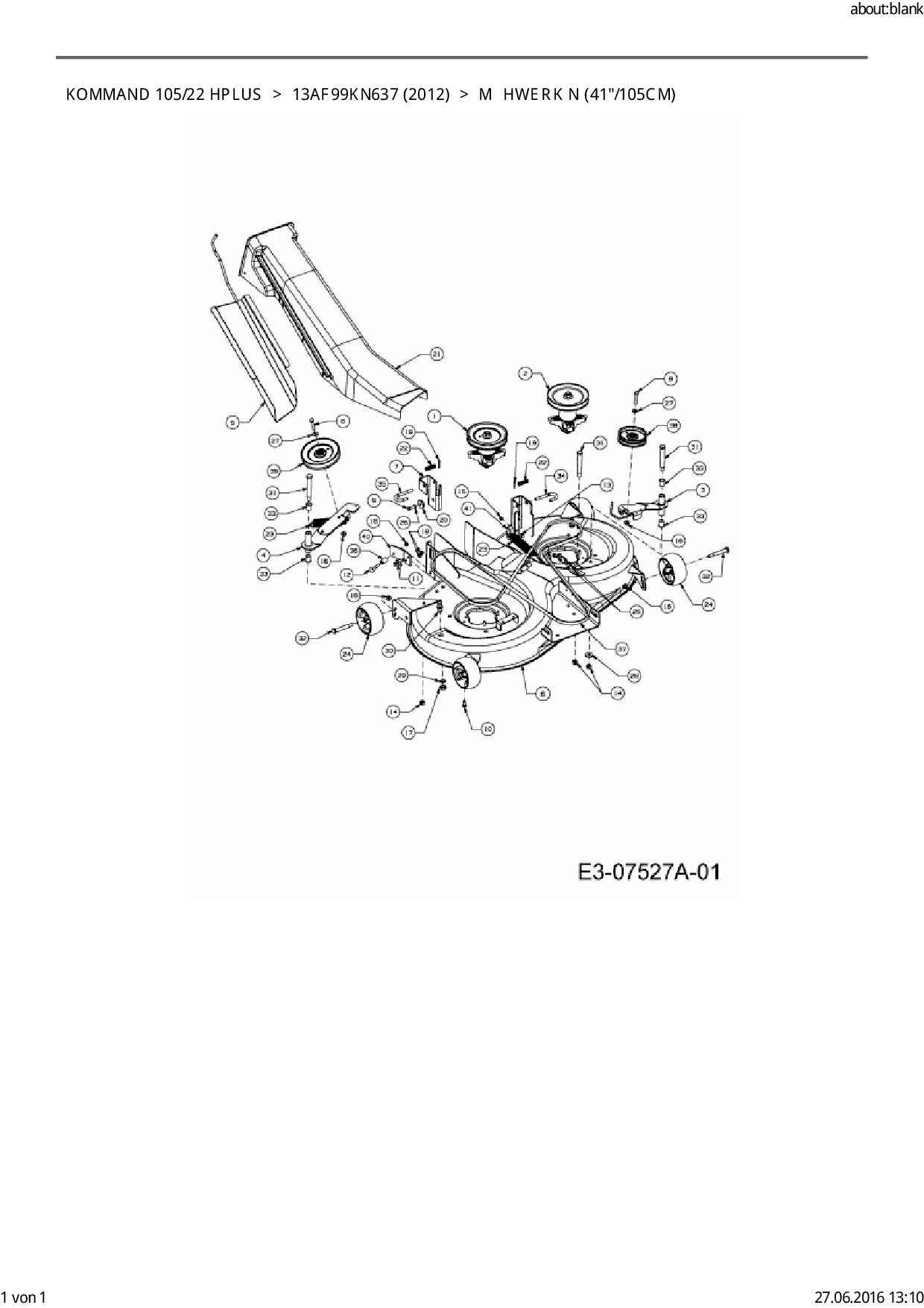 Zeichnung für EFCO Rasentraktor Kommand 105/22 HPlus mit der Geräte-Artikelnr. 13AF99KN637 ab Baujahr 2012: