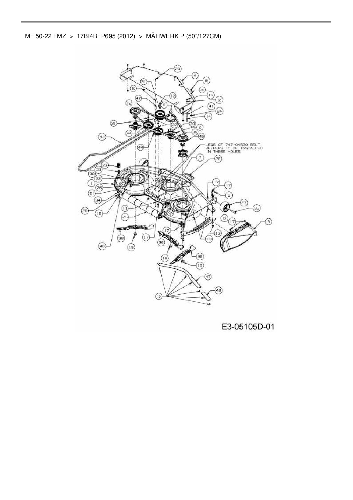 Zeichnung für Massey Ferguson Zero Turn MF 50-22 FMZ mit der Geräte-Artikelnr. 17BI4BFP695 ab Baujahr 2012: