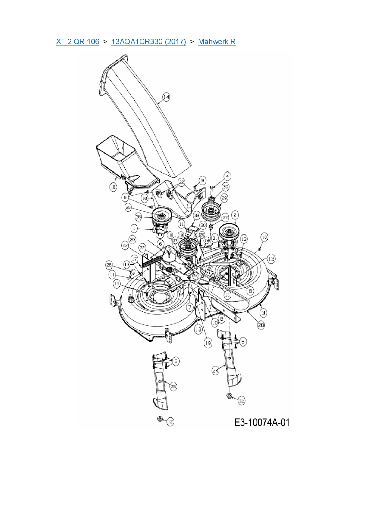 Ersatzteile für Rasentraktor Cub Cadet XT 2 QR 106 aus der Zeichnung Mähwerk R: