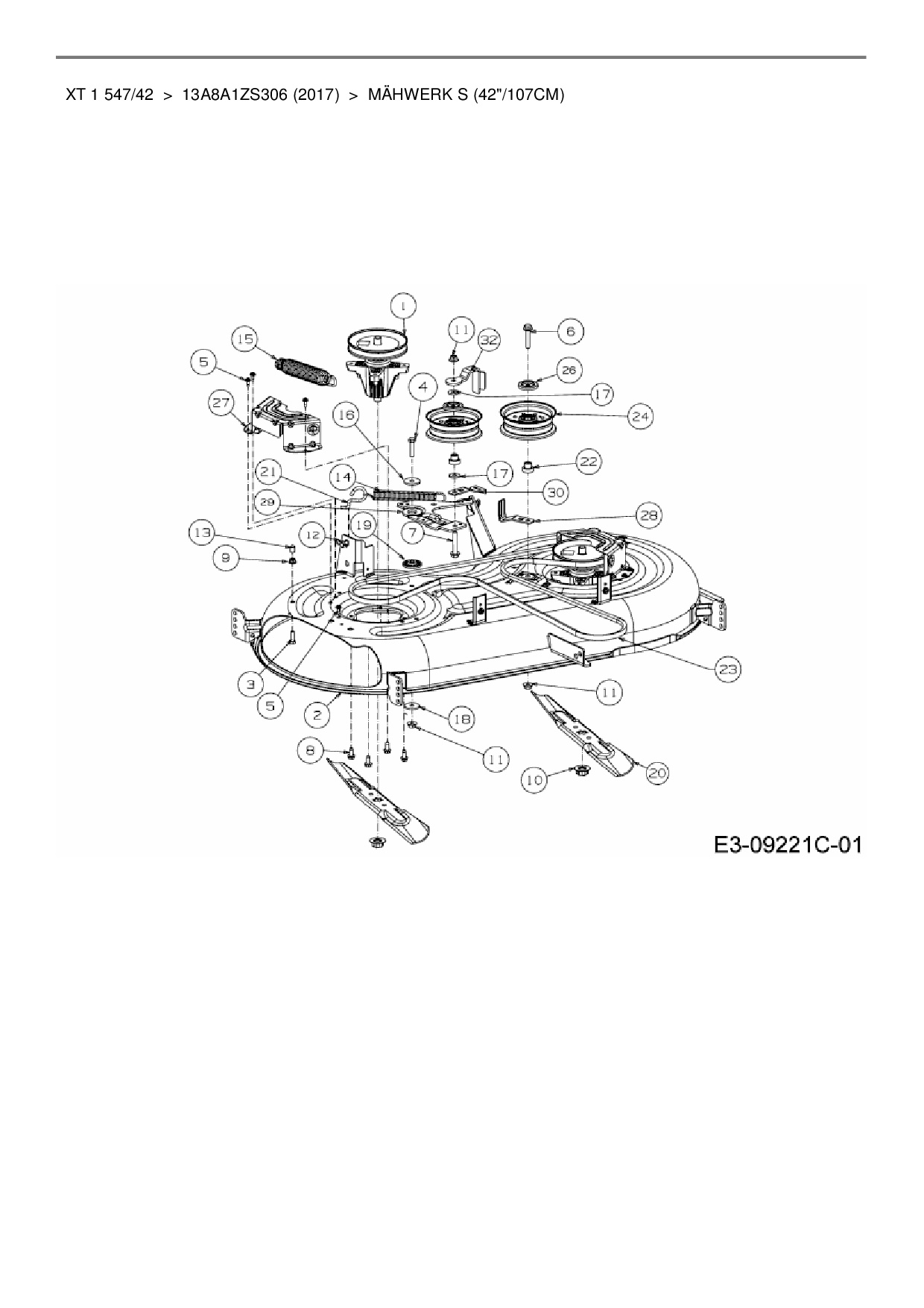 Ersatzteile für Rasentraktor MTD XT 1 547/42 aus der Zeichnung Mähwerk S (42"/107cm):