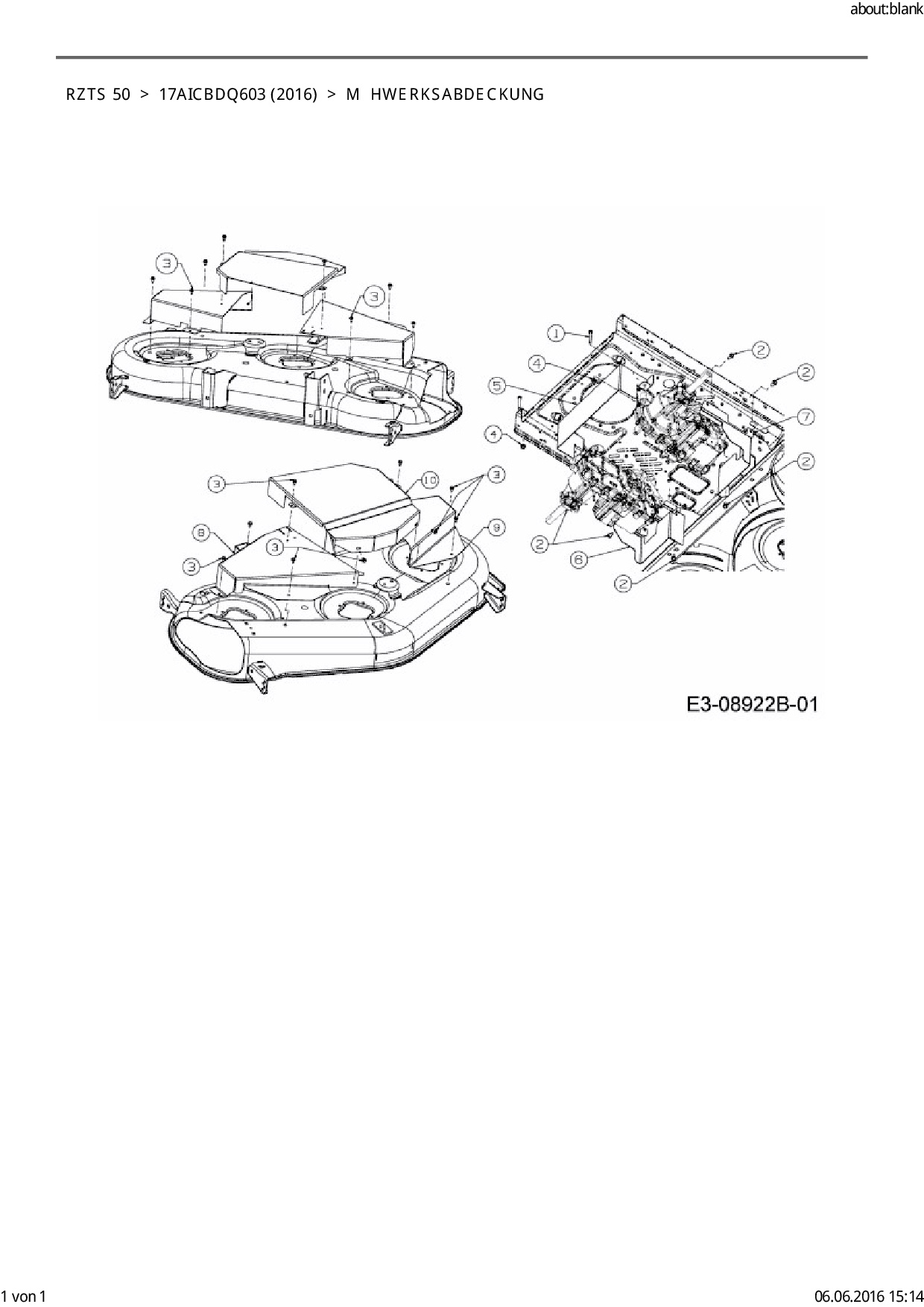 Ersatzteile für Zero Turn Cub Cadet RZTS 50 aus der Zeichnung Mähwerksabdeckung: