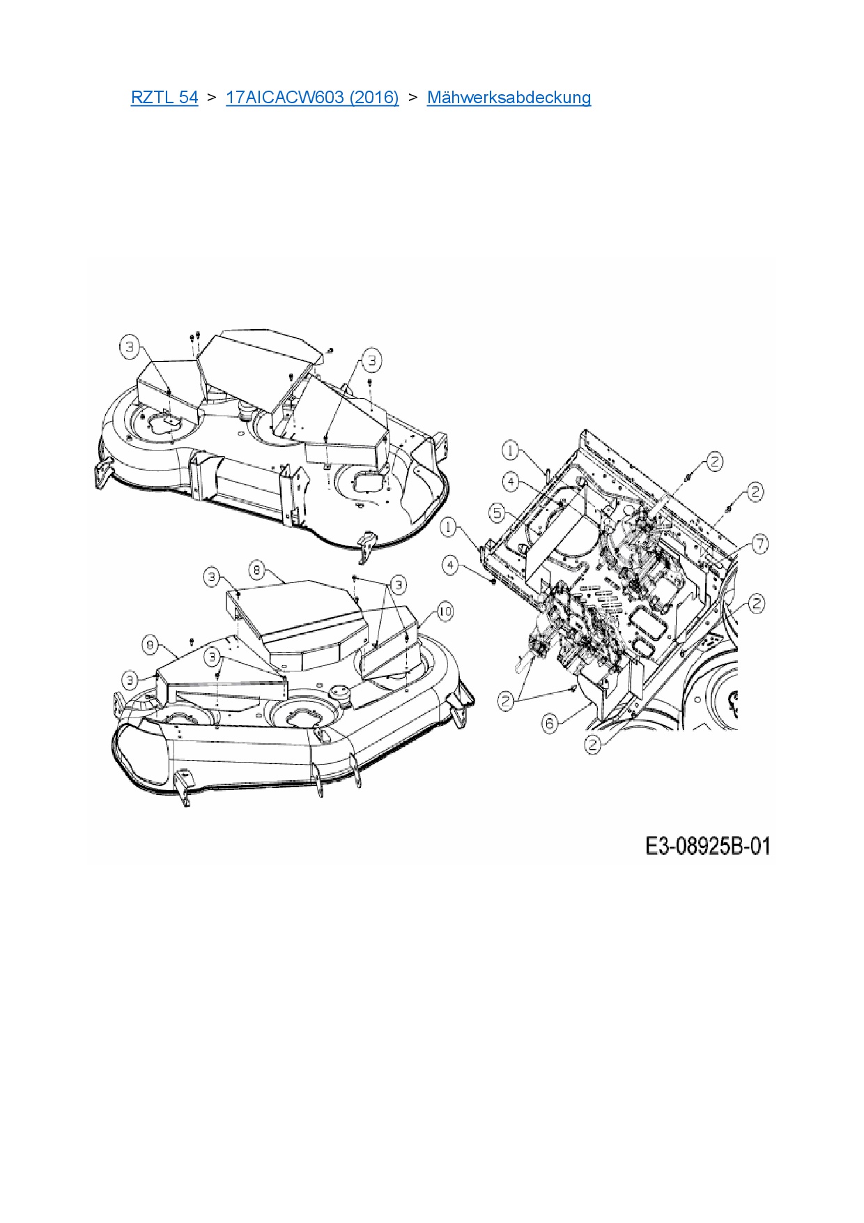 Download Ersatzteil-Zeichnung Cub Cadet RZTL 54 Zeichnung Mähwerksabdeckung (PDF-Format)