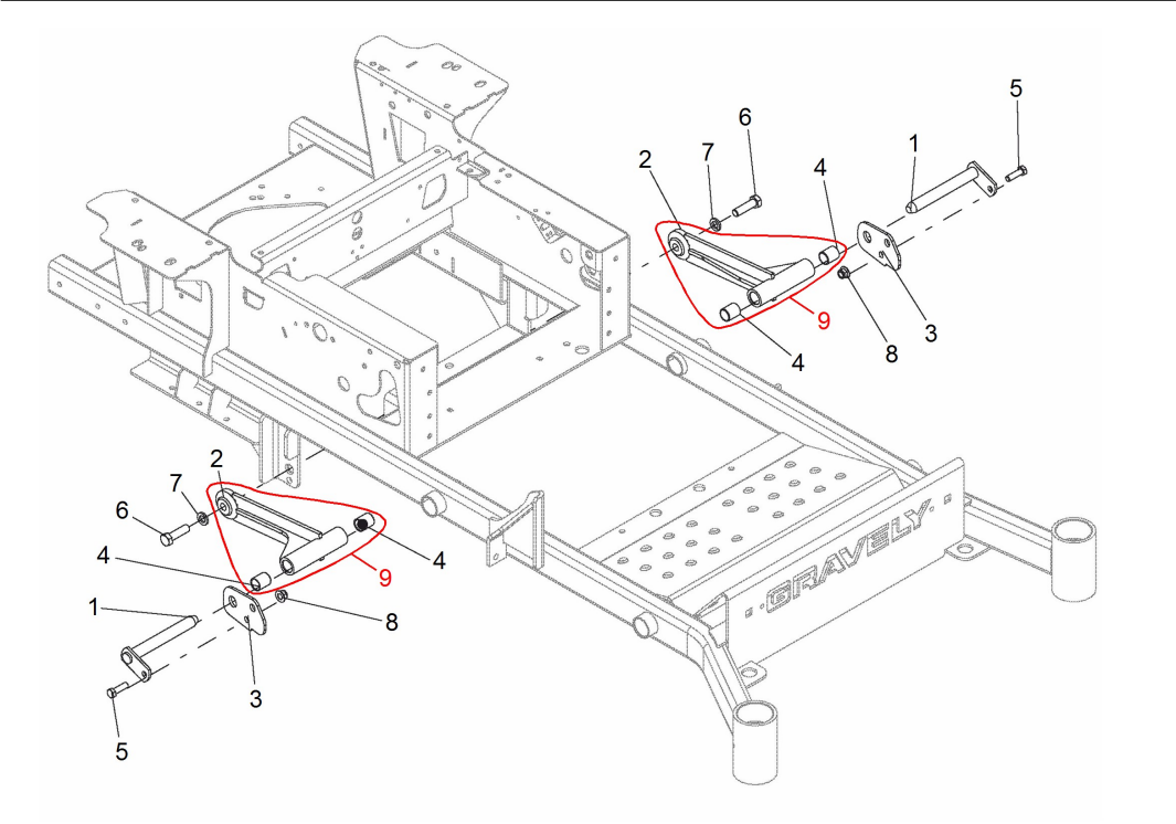 Zeichnung von Gravely PRO-TURN-48 (991306) Mähwerksaufhängung: