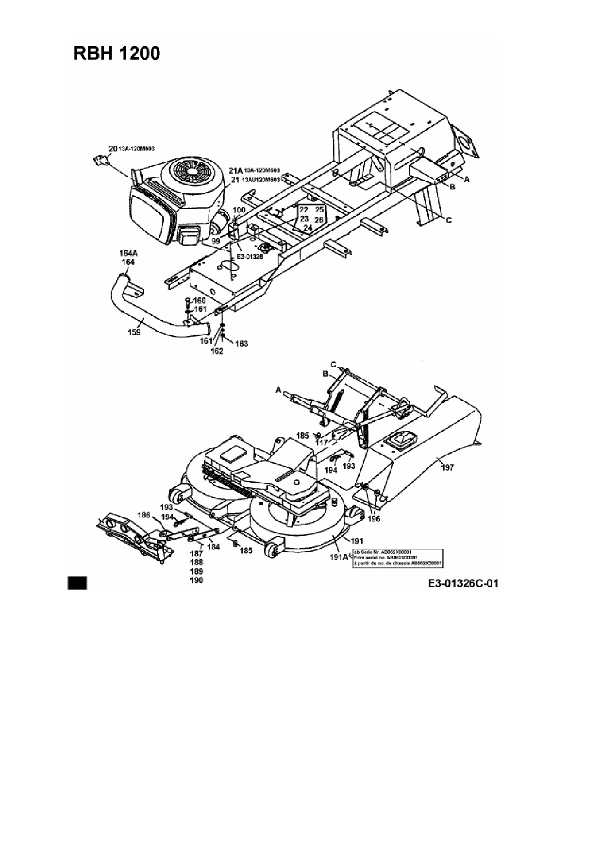 Ersatzteile für Rasentraktor Cub Cadet RBH 1200 aus der Zeichnung Mähwerksaushebung 1: