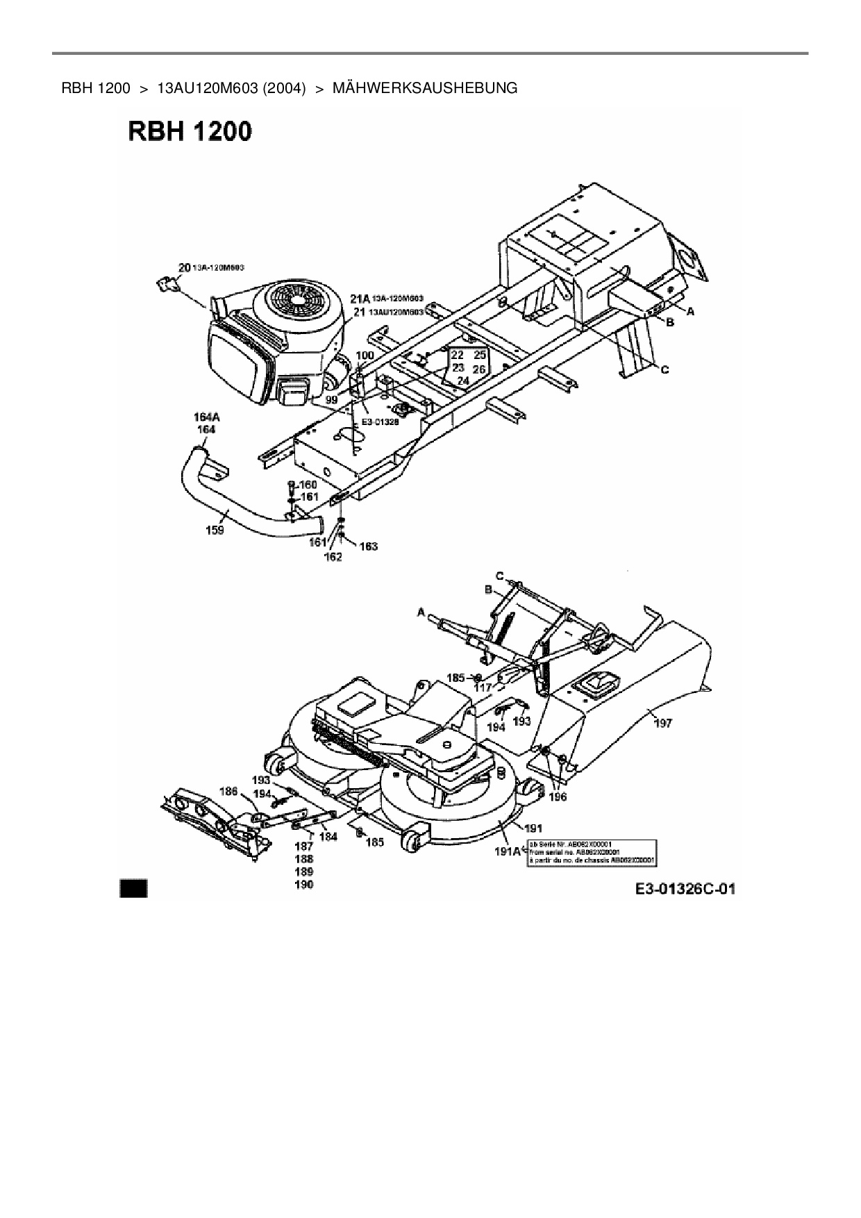 Ersatzteile für Rasentraktor Cub Cadet RBH 1200 aus der Zeichnung Mähwerksaushebung 1: