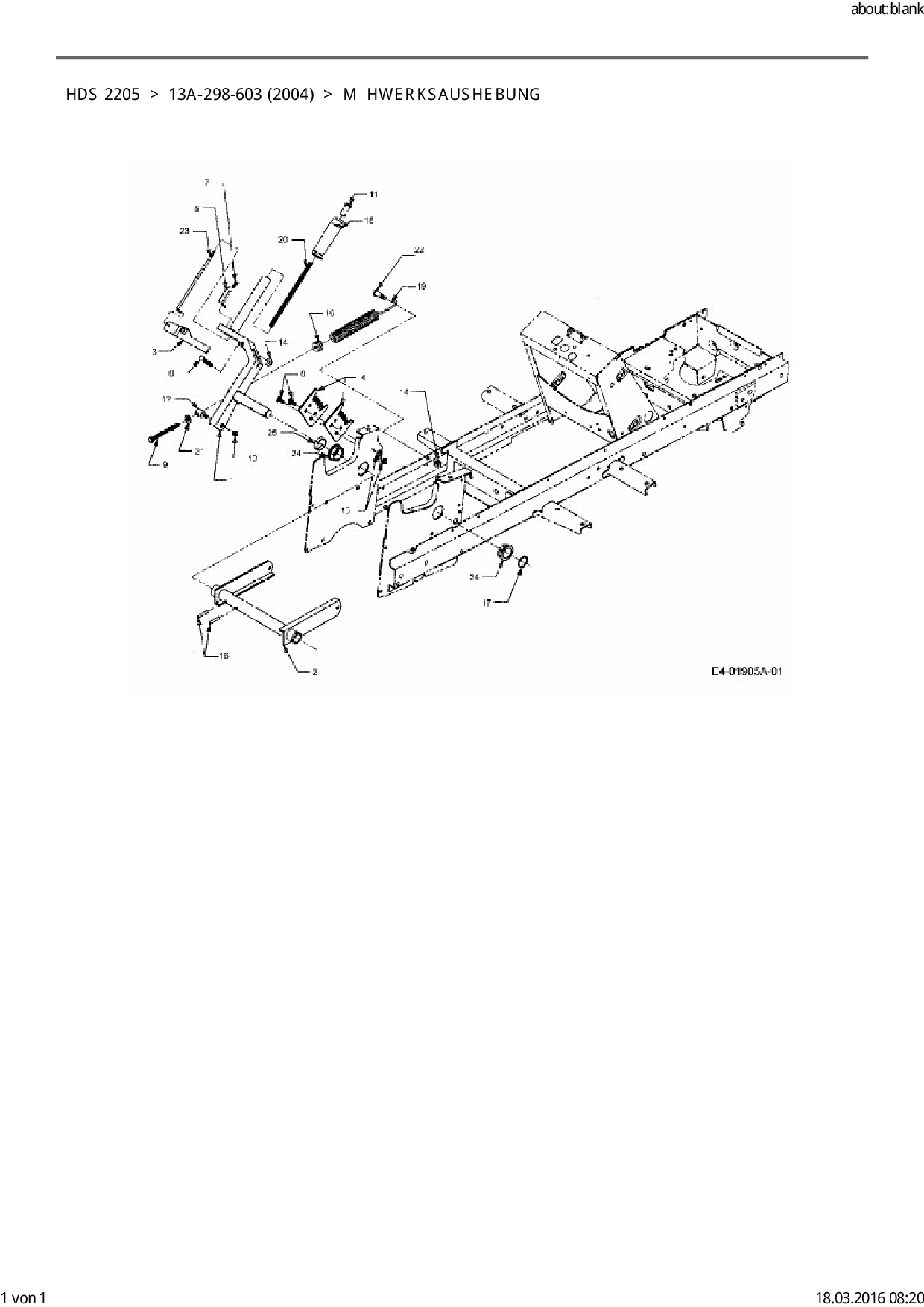 Ersatzteile für Rasentraktor Cub Cadet HDS 2205 aus der Zeichnung Mähwerksaushebung 1: