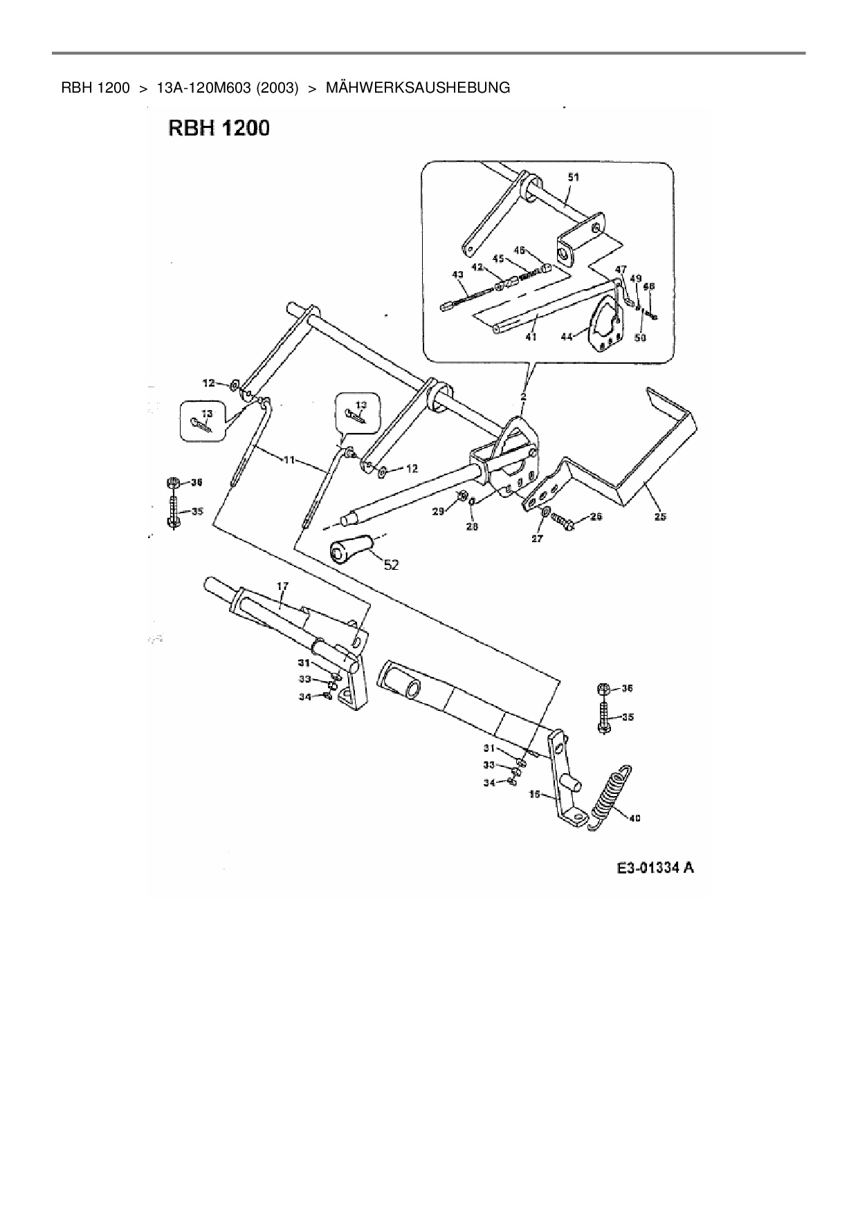 Ersatzteile für Rasentraktor Cub Cadet RBH 1200 aus der Zeichnung Mähwerksaushebung 2: