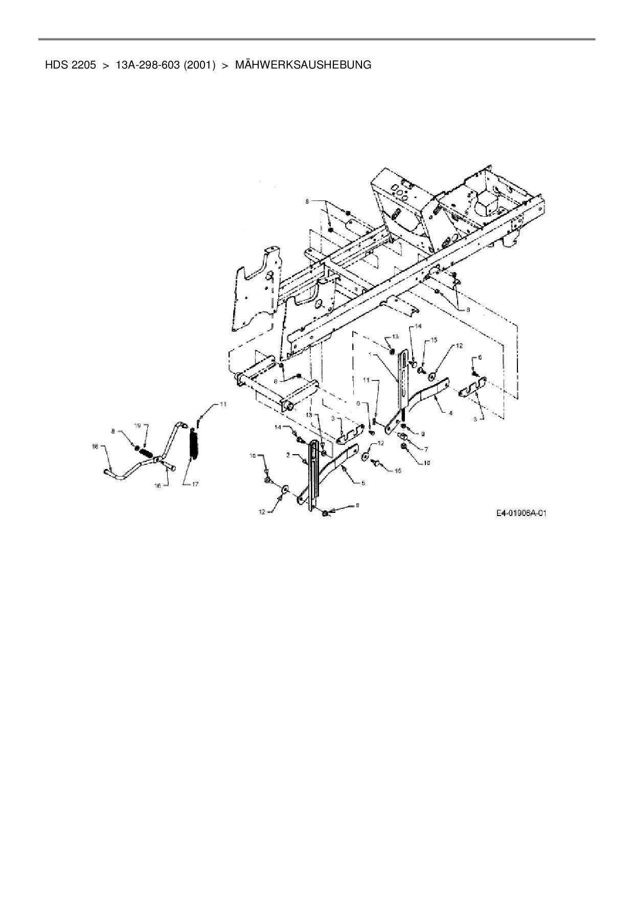 Ersatzteile für Rasentraktor Cub Cadet HDS 2205 aus der Zeichnung Mähwerksaushebung 2: