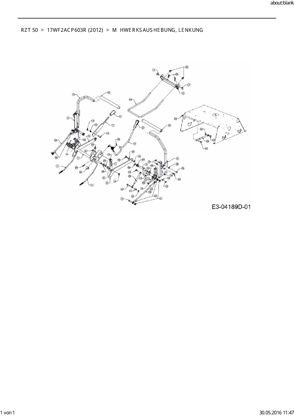 Ersatzteile für Zero Turn Cub Cadet RZT 50 aus der Zeichnung Mähwerksaushebung, Lenkung: