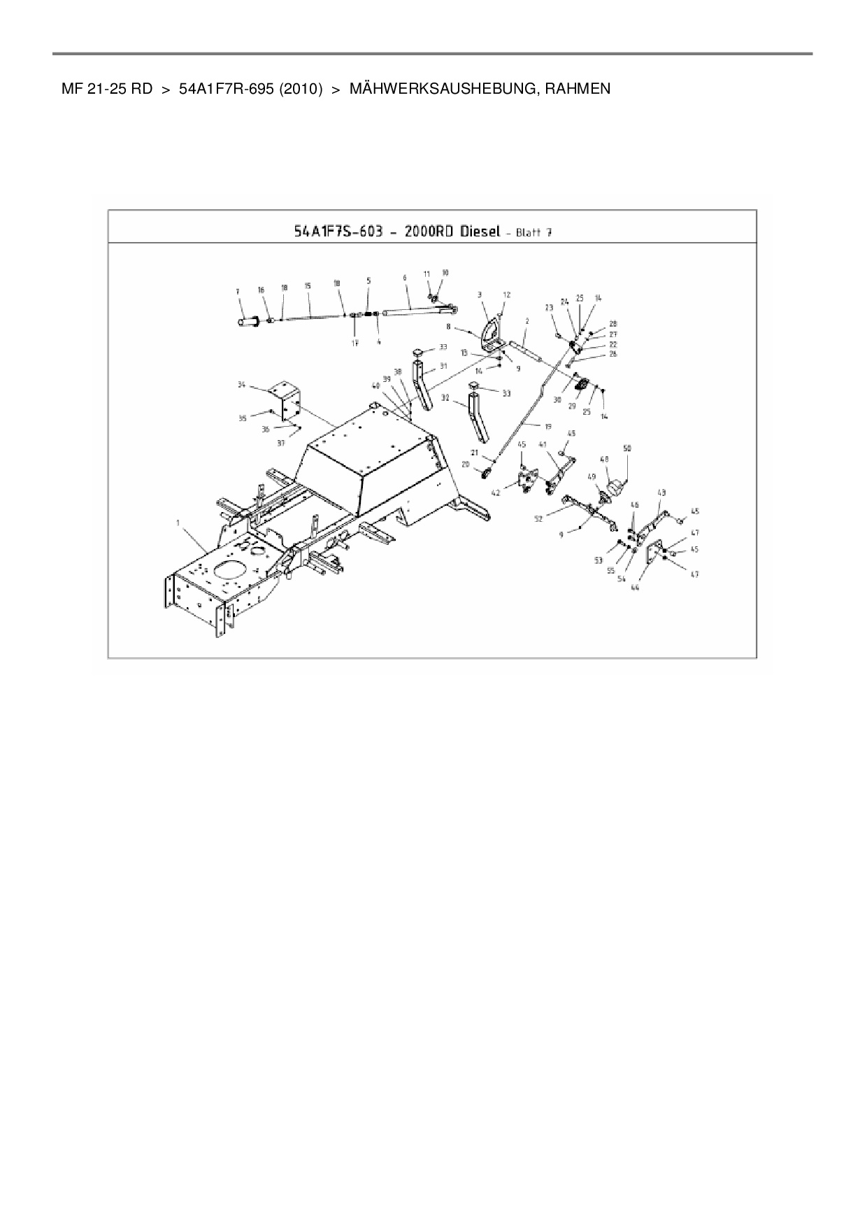 Ersatzteile für Kompakttraktor Massey Ferguson MF 21-25 RD aus der Zeichnung Mähwerksaushebung, Rahmen: