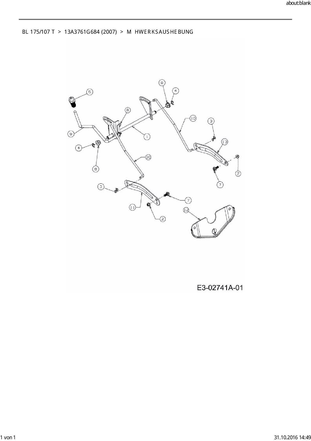 Ersatzteile für Rasentraktor Bolens BL 175/107 T aus der Zeichnung Mähwerksaushebung: